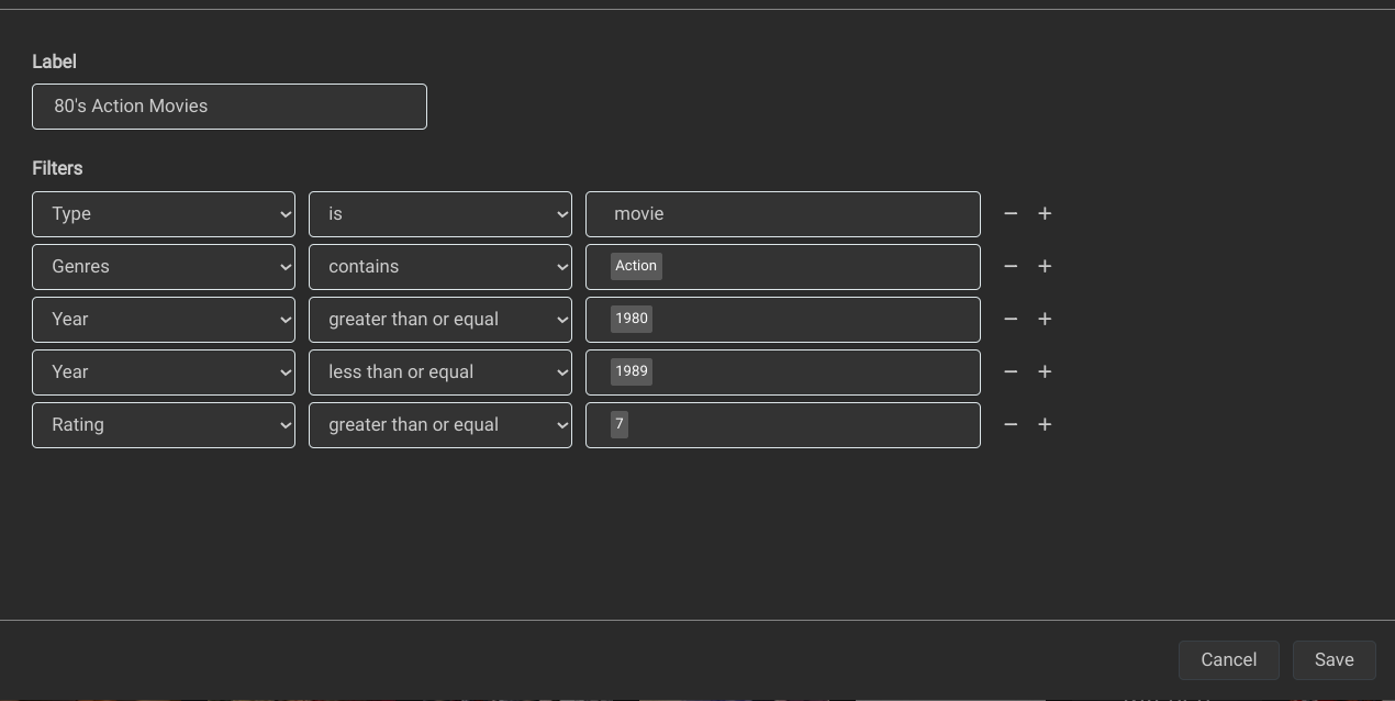 ebr 16169 Posted November 28, 2024 Posted November 28, 2024 1 hour ago, rbjtech said: Sure. Maybe you misunderstand how the external lists are used. They are not presented verbatim - they only show what you have available in your 'personal' media collection. So if the MDB list is 'classic films from the 80's' and you have lets say 5 of them available - then that is all it will show. Today - the equivalent in Emby will be a lesson in frustration - adding a filter, then individually adding the years from 1980 to 1989. And then when done - remembering to remove all the filters ... Seriously - do Emby not see this as a huge functional gap to not even being able to 'Save' this filter for re-use ? maybe you miss the point - this is the USER deciding what they want to see. The 'Admin' is not trying to force anything. Once they have a tailored 'smart playlist' where you can actually combine useful attributes (removed Genres, AND/OR items etc) then this will REPLACE the entire previous rows. I was simply answering the original question as to why the UI is designed as it is and also acknowledging that some adjustments to this original design are warranted. Not sure why that would meet with such animosity but Happy Thanksgiving! 1