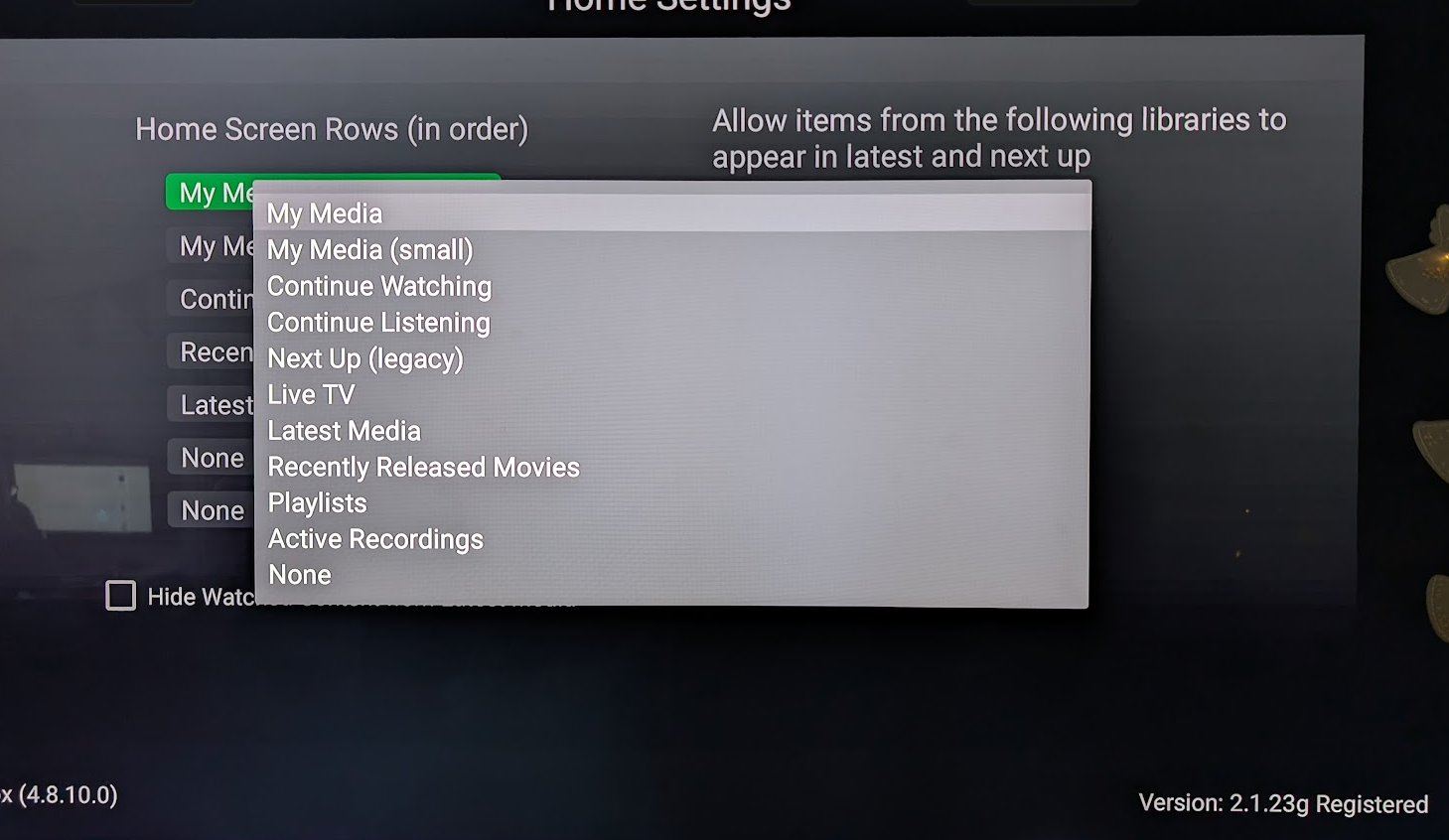 rbjtech 5284 Posted December 29, 2024 Author Posted December 29, 2024 On 28/12/2024 at 19:33, Luke said: What do you mean by "as an option" ? Hi Luke, On the AndroidTV configuration - it lists most of home screen options (Latest Media, Continue Watching etc) but does not include 'collections' (nor 'Recently Released Movies' but I'm not worried about that one - as it's covered under Collections for me). Thanks ! 1