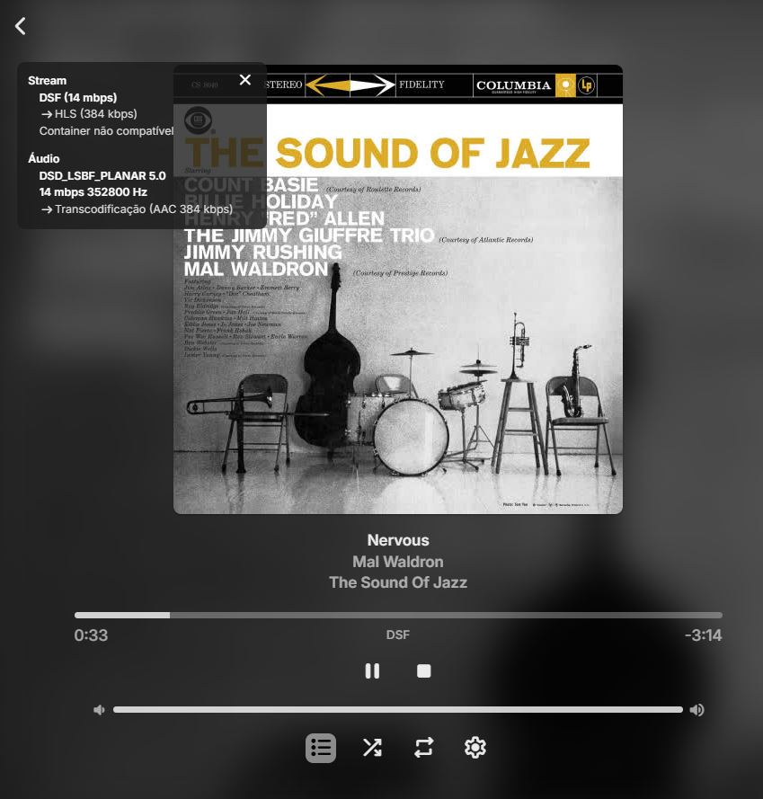 rui_moutinho 1 Posted December 6, 2024 Posted December 6, 2024 I'm new here. I continue experimenting with emby. Now I'm experimenting with audio files. First question: when «Direct Play» appears in the statistics, shouldn't that mean that there is no Downmix? In fact, a 24/96 file, despite the “Direct Play” indication appearing, my receiver only identifies it as 48 Khz. More: On the PC it can read all formats (even though some formats like DSD it downmixes). The same files, on the LG WebOS C4 TV, cannot be read. Are these emby problems common when reading HI-RES audio files? Thanks