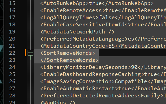 Asazen 8 Posted December 10, 2024 Author Posted December 10, 2024 24 minutes ago, Luke said: If you remove the configuration altogether, then the server will reset it back to the default value. Instead, keep SortRemoteWords, but don't have any strings inside. I just tried it that way too, and I realized that after restarting emby with that file edited, the server does not start.