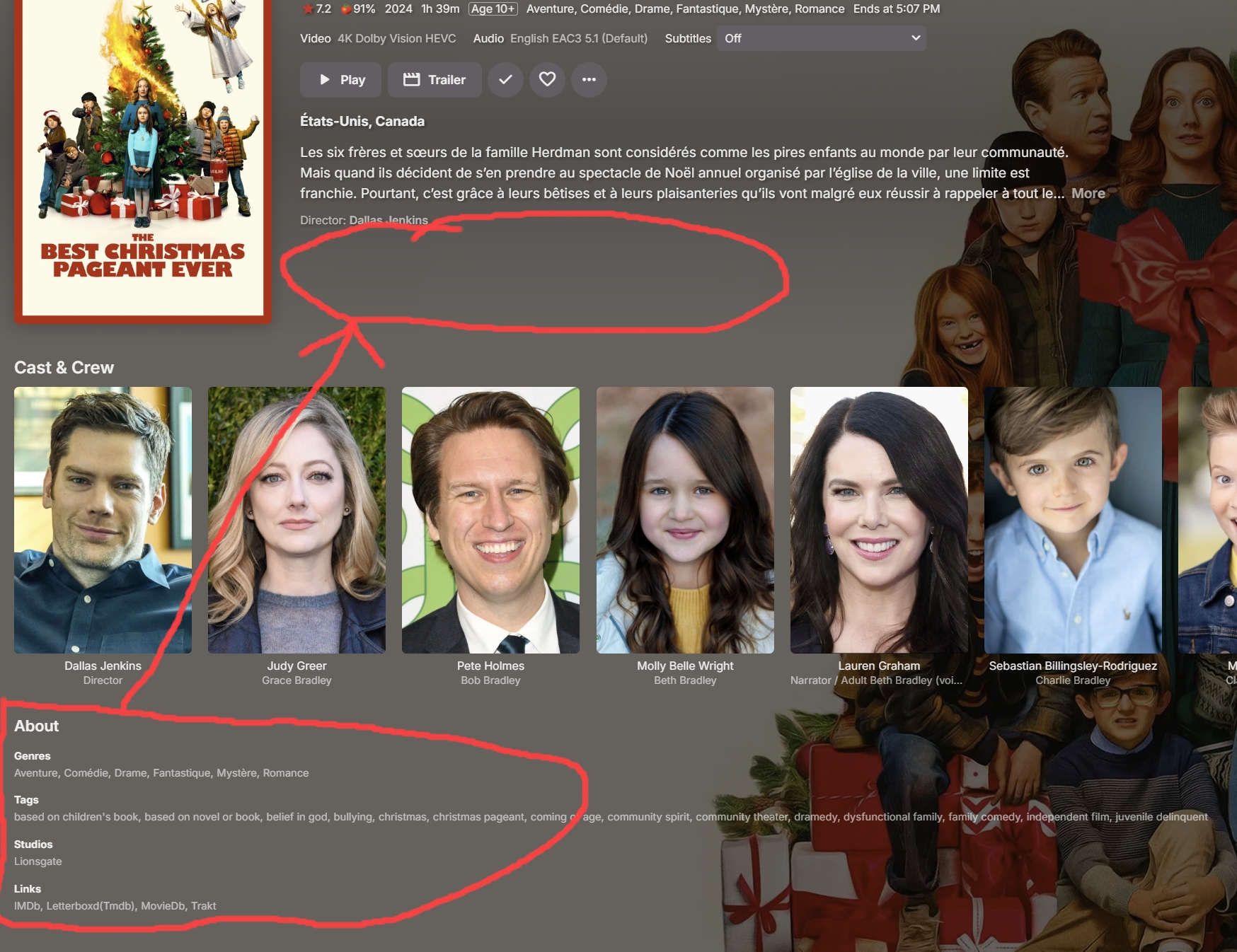 The text block is below the "Cast and Crew" row in the HTML doc.  If you moved it up with a CSS style, there would be a problem to fit it below the overview.txt and above the "Cast and Crew" row.  You could possibly fit it for one media but it would overlap on other media pages with smaller overview.txt.    If you added the film to a "Collection", there would be a new "Collection" row below "Cast and Crew" and if you had "More Like This" active, there would be another row.  So there are 3 possible rows above the "About" area.  But your CSS change position style is only one value.  You would have to also use javascript to see if a particular media page had these extra rows and then give a different CSS position value for each situation.