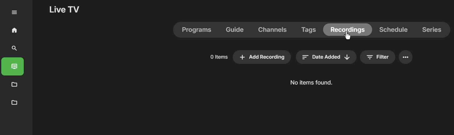 juergenthefish 0 Posted January 1, 2025 Posted January 1, 2025 Hi, I just joined and tested recording a channel. Everything’s fine as I found my recording after clicking on “Recordings” on the left pane. But, when I choose “Live TV” on the left pane and then click on “Recordings” at top of the screen, I am getting a “No items found”. Hence I am wondering what is the difference between those two types of “Recordings”. I tried to figure it out from the documentation and also from the various configuration screens, but without any success. Could anyone kindly sched some light on this? Happy New Year!