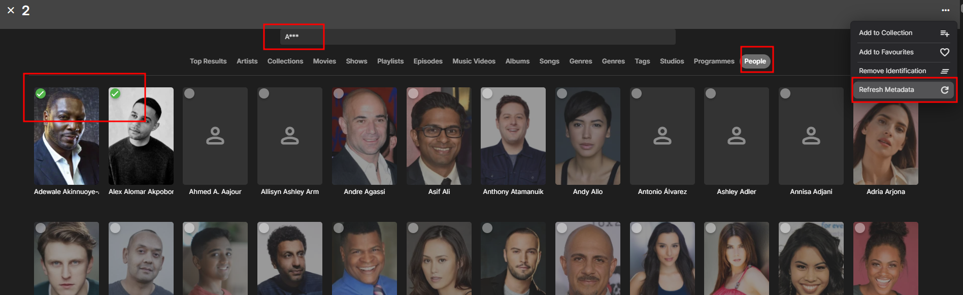 Solution Neminem 1519 Posted January 3, 2025 Solution Posted January 3, 2025 (edited) You can search for A*** goto people and multiselect all in that search. Then 3 dot line select "Refresh Metadata" After that search for B*** etc. I have not found an easier way to do it. Edited January 3, 2025 by Neminem 1
