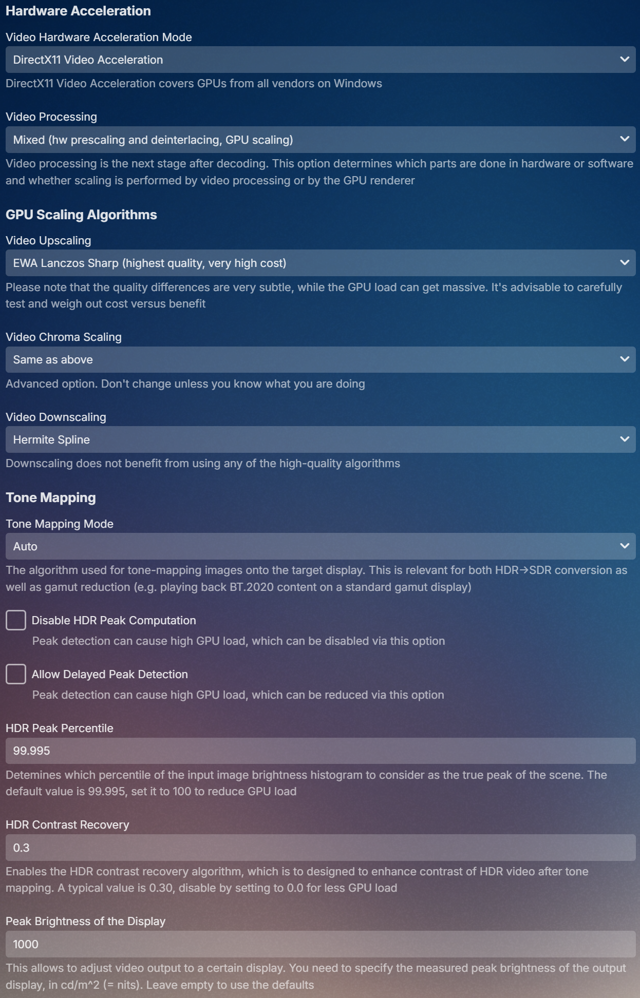 You have peak brightness set to 1000. Unfortunately, this also effects SDR media. If you remove that and leave it blank, the picture will be bright again