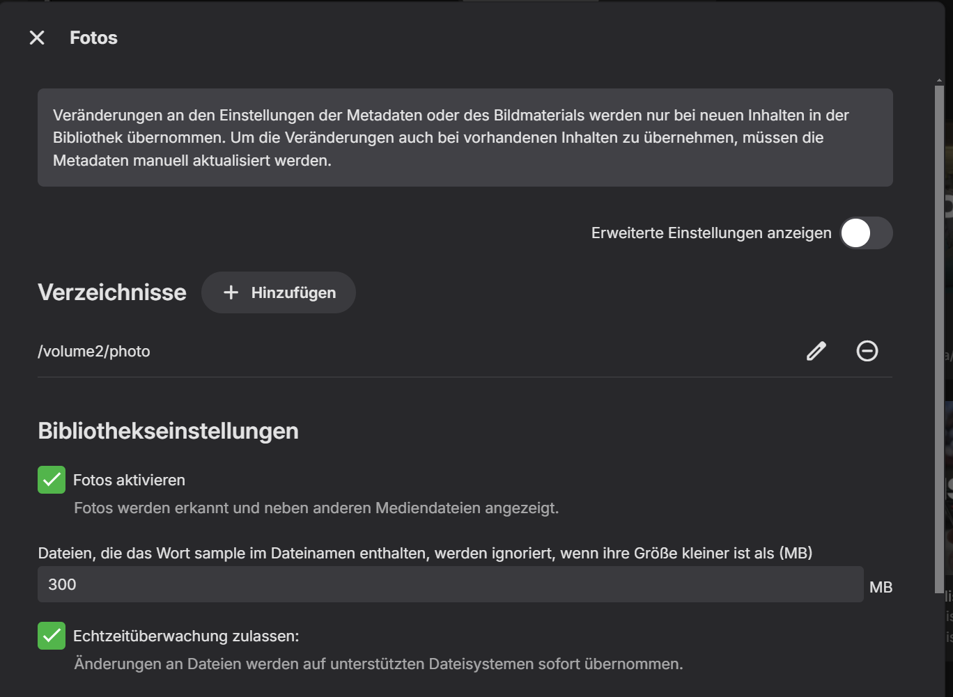 I'm actually using Synology Photos in addtion to your setup, so my folder is a sub of /photos.