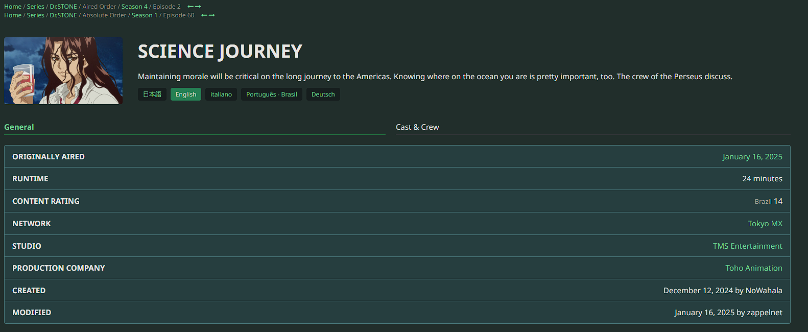 Riptide126 24 Posted January 16, 2025 Posted January 16, 2025 Hello, I am having an issue where the episode description is in the wrong language. I have attached photos of both my settings for the library as far and metadata and one of the episodes in it. I also have attached an image of the episode from TVDB and as you can see the description is available in english. If there is anything else you need from me please let me know, thanks!