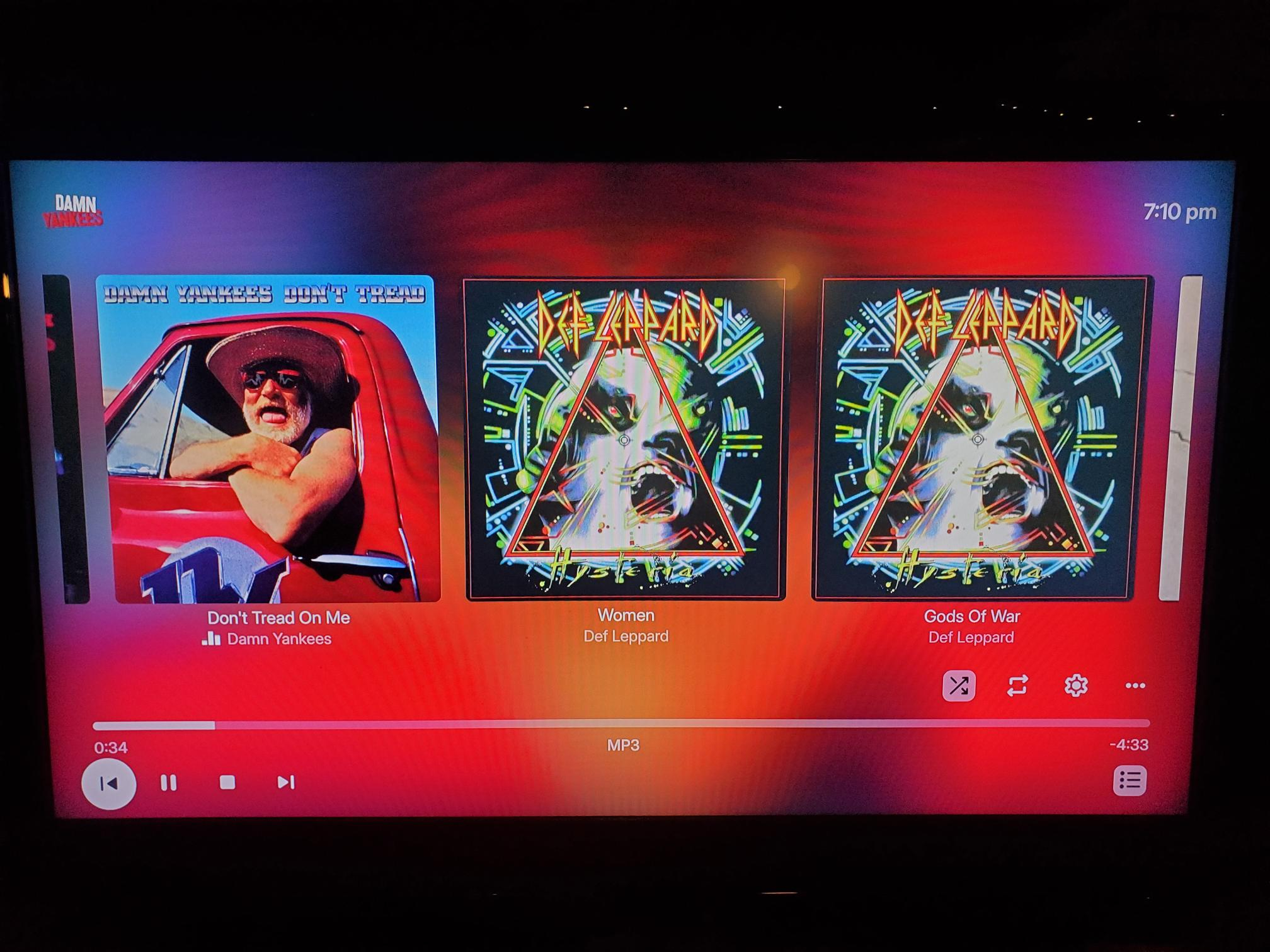 carpenter2003 3 Posted January 17, 2025 Author Posted January 17, 2025 So here is the screenshot from my Media PC/TV. I've shuffled a long playlist. Its in TV mode, on a PC you would have a vertical track list to the right, but I believe its still the same issue. Currently its playing the track on the left. The cover art order you see though is the default playlist order. If I hit next track it is NOT going to be the Def Leopard song that currently is to the right of the active track. It will jump to some other song in the playlist. In the previous version of the Emby for Windows, when you shuffled a playlist and then came to this display. The cover art was in the actual shuffled order, the next two tracks shown were what was going to played next. You could easily scroll left and right to see what tracks were coming up or had already played from the shuffled order. Maybe the new version is just randomly picking a track at the end of each song rather then shuffling the full list at the start of playback?