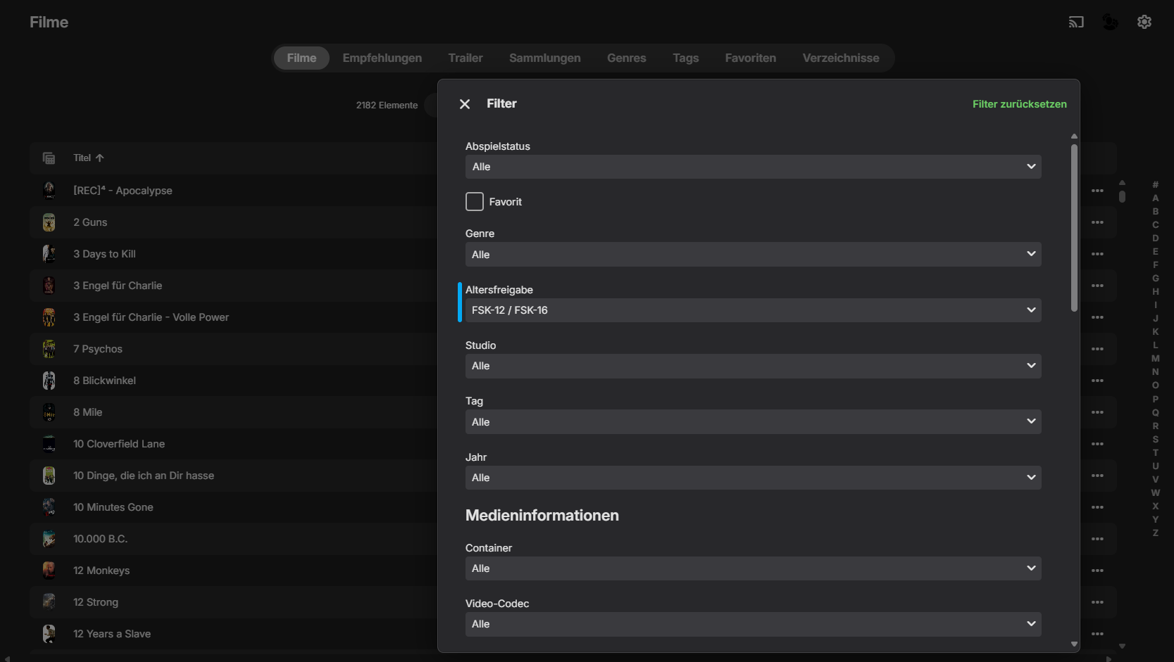 Maischens 2 Posted January 29, 2025 Posted January 29, 2025 Android App 3.4.20 on Samsung S23 Ultra Emby Server 4.8.10.0 on Synology NAS 64 bit Hello, I'm trying to filter the list of films by age rating. If I only select one age rating (FSK12), all films with this rating will be shown to me. As soon as I select 2 ratings, the list is empty. On the PC via the web interface, when I select multiple age ratings, all films are displayed according to the selection. How can i fix this on Android? Maischens