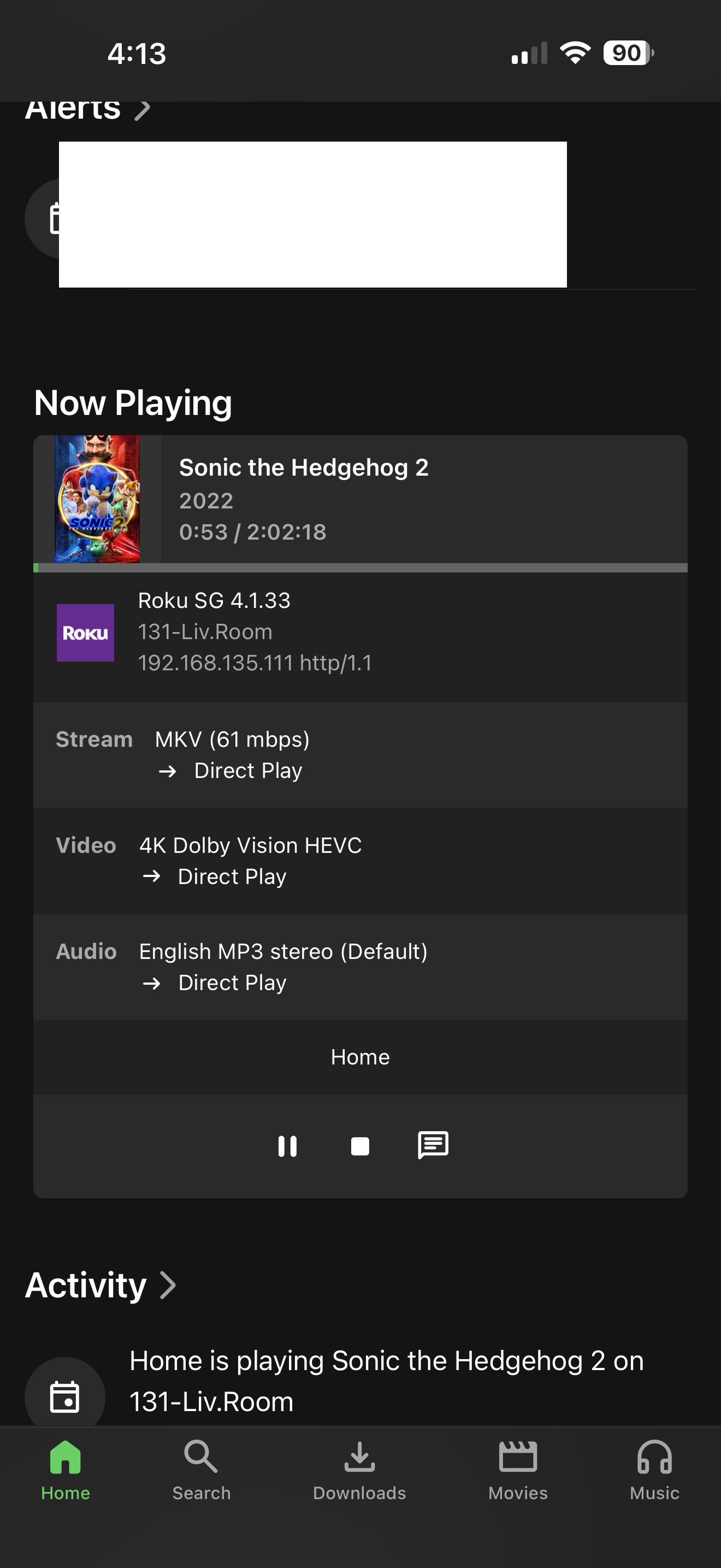 dyecast 6 Posted February 3, 2025 Author Posted February 3, 2025 (edited) I start to play the video on Roku. After several minutes, nothing is still happening on the TV. See TV screenshot. I took a phone screenshot of the progress at one point. No transcoding. Should be playing and yet here we are. Edited February 3, 2025 by dyecast