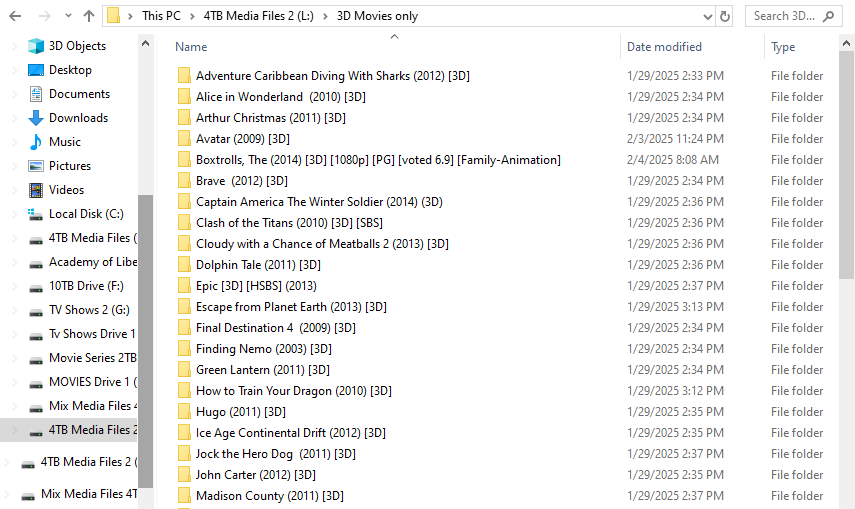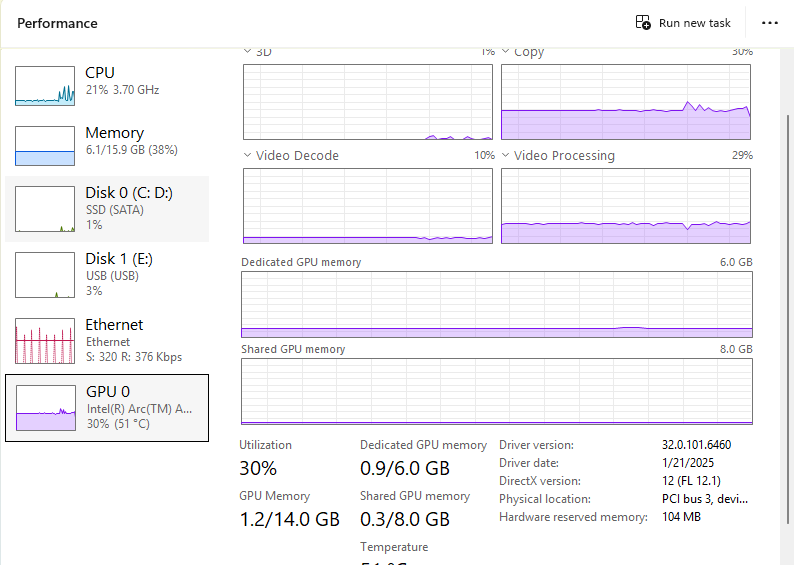 Airbender 128 Posted February 4, 2025 Posted February 4, 2025 (edited) Hello All, I am having few different issues with 3D Movies and i will explain them here one by one and provide some supporting data. Issue 1: Poster wont show 3D I added 1.2TB of 3D movies in various formats, including complete Blu-ray disc ISOs and MKV SBS 3D files. After adding them to Emby and completing the scan, I noticed that Emby is recognizing them as regular HD movies instead of 3D. some show 4K sing and some show Blu-ray but none show 3D. In past this use to be different 3D movies use to get posters that show 3D tag on them. Is there is a way to make Emby put Tag or get poster that says 3D? Issue 2 Playback with buffer: I'm experiencing an odd buffering issue. When playing a full 50GB Blu-ray, there’s no buffering at all. However, when playing any 3D format, it buffers so much that playback starts and stops repeatedly. The CPU spikes to 100%, and there’s no way to bypass this. I logged into the Emby Dashboard, adjusted transcoding to "Slow," and experimented with the settings, but I couldn't find a way to fix the buffering issue. My system is 13 years old: CPU: Intel Core i7-2600 @ 3.40GHz RAM: 20GB Dual-Channel DDR3 @ 665MHz (9-9-9-24) Motherboard: Hewlett-Packard 1587h (XU1 PROCESSOR) I added a GPU to the system, but it seems Emby and Plex don’t support it—or I may be mistaken. To improve performance, NVIDIA GeForce GTX 650 (1GB) so i removed it and I bought a Sparkle Intel Arc A380 ELF (6GB GDDR6), but my power supply or motherboard didn’t support it. The PC kept rebooting, so I had to remove it as well. this is extremely old so i dont think anymore upgrade are possible. I also took one of the pc's i have and installed the GPU in it Sparkle Intel Arc A380 ELF (6GB GDDR6). Intel Core i7 4790 @ 3.60GHz 16.0GB Dual-Channel DDR3 @ 798MHz 465GB Samsung SSD 860 EVO 500GB I installed windows 10 x64bit clean and then i install Emby theater client and tested no luck with buffering even though i thought it will help with transcoding As i said for testing this i used Firestick, PC, Xbox X and no luck For this test I examine 2 title to narrow down troubleshoot the issue: let me provide the info on media: Unique ID : 88572881451210865566456418132678099504 (0x42A2843708BF4E7DBA0081E1F70B4230) Complete name \3D Movies\Jurassic World Fallen Kingdom (2018) [3D]\Jurassic World Fallen Kingdom (2018) [3D].mkv Format : Matroska Format version : Version 4 File size : 29.8 GiB Duration : 2 h 8 min Overall bit rate : 33.3 Mb/s Frame rate : 89.911 FPS Encoded date : 2024-09-27 06:19:45 UTC Writing application : mkvmerge v87.0 ('Black as the Sky') 64-bit Writing library : libebml v1.4.5 + libmatroska v1.7.1 / Lavf61.1.100 VIDEOAI : Enhanced using amq-13. Changed resolution to 3840x1600 Video ID : 1 Format : HEVC Format/Info : High Efficiency Video Coding Format profile : Main 10@L5.2@Main Codec ID : V_MPEGH/ISO/HEVC Duration : 2 h 8 min Bit rate : 31.1 Mb/s Width : 3 840 pixels Height : 1 600 pixels Display aspect ratio : 2.40:1 Frame rate mode : Constant Frame rate : 89.911 FPS Color space : YUV Chroma subsampling : 4:2:0 Bit depth : 10 bits Bits/(Pixel*Frame) : 0.056 Stream size : 27.9 GiB (94%) Default : No Forced : No Color range : Limited Matrix coefficients : BT.709 Audio #1 ID : 2 Format : DTS Format/Info : Digital Theater Systems Codec ID : A_DTS Duration : 2 h 8 min Bit rate mode : Constant Bit rate : 1 509 kb/s Channel(s) : 6 channels Channel layout : C L R Ls Rs LFE Sampling rate : 48.0 kHz Frame rate : 93.750 FPS (512 SPF) Bit depth : 24 bits Compression mode : Lossy Stream size : 1.35 GiB (5%) Language : English Default : Yes Forced : No Audio #2 ID : 3 Format : AC-3 Format/Info : Audio Coding 3 Commercial name : Dolby Digital Codec ID : A_AC3 Duration : 2 h 8 min Bit rate mode : Constant Bit rate : 640 kb/s Channel(s) : 6 channels Channel layout : L R C LFE Ls Rs Sampling rate : 48.0 kHz Frame rate : 31.250 FPS (1536 SPF) Compression mode : Lossy Stream size : 587 MiB (2%) Service kind : Complete Main Default : Yes Forced : No Dialog Normalization : -31 dB cmixlev : -4.5 dB surmixlev : -6 dB dialnorm_Average : -31 dB dialnorm_Minimum : -31 dB dialnorm_Maximum : -31 dB Text ID : 4 Format : UTF-8 Codec ID : S_TEXT/UTF8 Codec ID/Info : UTF-8 Plain Text Duration : 2 h 7 min Bit rate : 48 b/s Frame rate : 0.232 FPS Count of elements : 1771 Stream size : 45.5 KiB (0%) Title : Sub. Eng. Not Hearing Language : English Default : Yes Forced : No Here is File 2: Unique ID : 150853709524402534131192341019446195532 (0x717D5E1D9F33CB1865480D1757BFB54C) Complete name \3D Movies\Ready Player One 3D (2018)\Ready Player One 3D (2018).mkv Format : Matroska Format version : Version 4 File size : 34.9 GiB Duration : 2 h 19 min Overall bit rate mode : Variable Overall bit rate : 35.7 Mb/s Frame rate : 89.911 FPS Movie name : Ready Player One Encoded date : 2024-09-25 15:27:06 UTC Writing application : mkvmerge v87.0 ('Black as the Sky') 64-bit Writing library : libebml v1.4.5 + libmatroska v1.7.1 / Lavf61.1.100 VIDEOAI : Enhanced using amq-13. Changed resolution to 3840x1600 Video ID : 1 Format : HEVC Format/Info : High Efficiency Video Coding Format profile : Main 10@L5.2@Main Codec ID : V_MPEGH/ISO/HEVC Duration : 2 h 19 min Bit rate : 31.8 Mb/s Width : 3 840 pixels Height : 1 600 pixels Display aspect ratio : 2.40:1 Frame rate mode : Constant Frame rate : 89.911 FPS Color space : YUV Chroma subsampling : 4:2:0 Bit depth : 10 bits Bits/(Pixel*Frame) : 0.058 Stream size : 31.1 GiB (89%) Default : No Forced : No Color range : Limited Matrix coefficients : BT.709 Is there is anyway possible to fix the buffering issue? Please advise Thank you very much Edited February 4, 2025 by Airbender