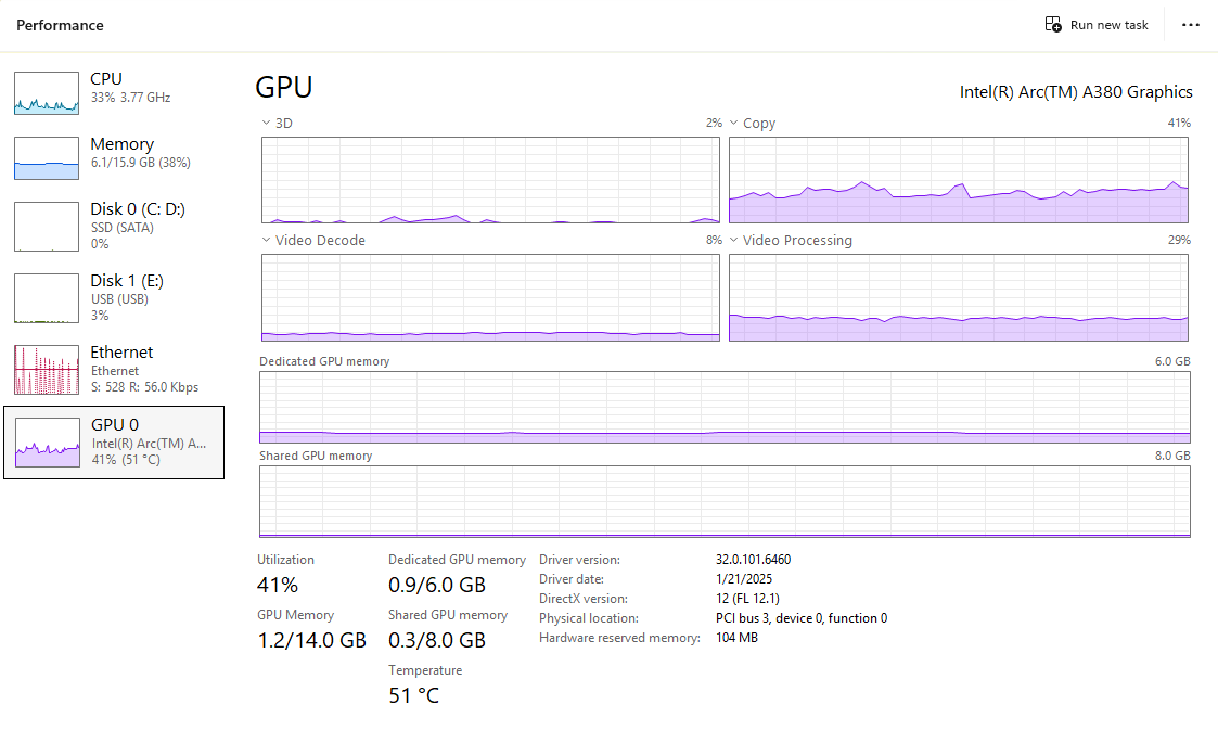Airbender 128 Posted February 5, 2025 Author Posted February 5, 2025 Just did one more test with my Test server pc if we can call it and this time i added AMD Radeon RX 6600. The AMD Radeon™ RX 6600 graphics card has 28 compute units, 32 MB of new AMD Infinity Cache, 8GB GDDR6, and a game clock upto 2044 MHz. Emby will buffer but plex no issue. So the question which GPU does Emby like for encodings? Thanks embyserver.txt ffmpeg-transcode-1bc53cc8-0408-4634-9fa6-1562c0770d35_1.txt ffmpeg-transcode-7fa0dd9c-1d54-4482-8b69-eb5bb334654c_1.txt ffmpeg-transcode-37979d8f-1b83-4b73-a363-a0573a2e5253_1.txt ffmpeg-transcode-d19c46c2-dbb0-41f5-baf1-1c76d85b1d0a_1.txt hardware_detection-63874312379.txt