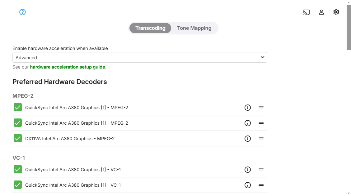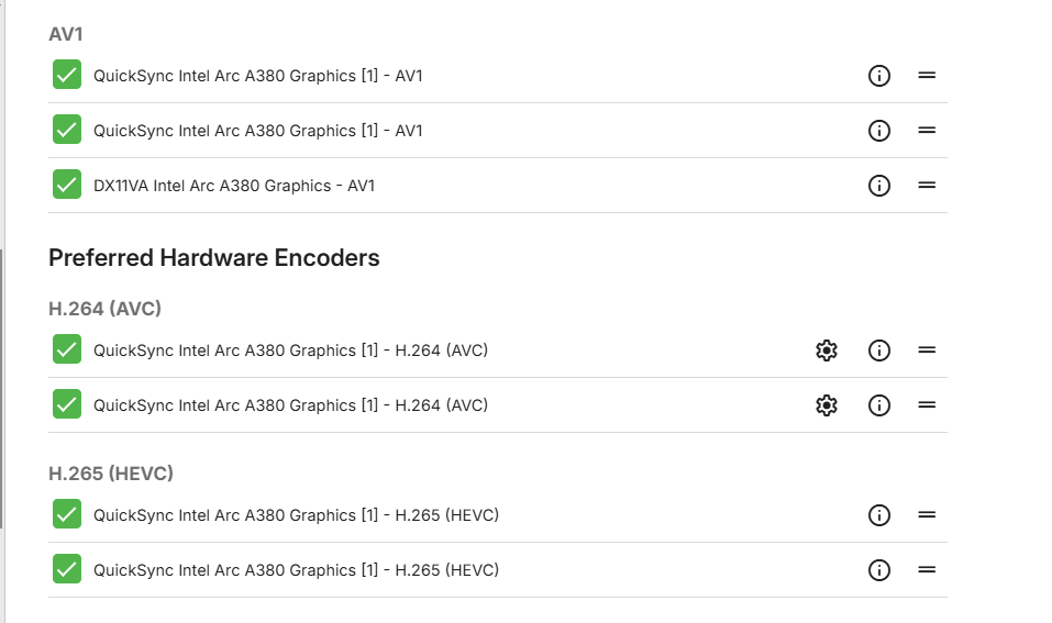 Airbender 128 Posted February 5, 2025 Author Posted February 5, 2025 14 minutes ago, Lessaj said: Remote users default to 7 Mbps now, so they would need to adjust the quality on their side too - depending on the speed of their network and yours. You would need to treat their remote network like a home network in order for auto to even attempt to direct play at full quality, though I don't know why the XBOX is limited to 40, either that's the default there or it was set at some point for some reason. You'll have to check on the device. Roger that i learn few new things since i posted here so thank you for teaching me. so in your opinion Which GPU do you use exclusively recommend Emby server? amd is there is a 3rd party tool that can examine the GPU usage with emby server? I brrowed computer from a friend and tested Sparkle Intel Arc A380 ELF, 6GB GDDR6, Single Fan, SA380E-6G and AMD Radeon RX 6600 8GB Dual Fan Sapphire Graphics Card but so far no luck buffering still happing. I did post the logs and screenshot in this post but i wonder if there are tested GPU that one should consider for feature upgrades Thanks