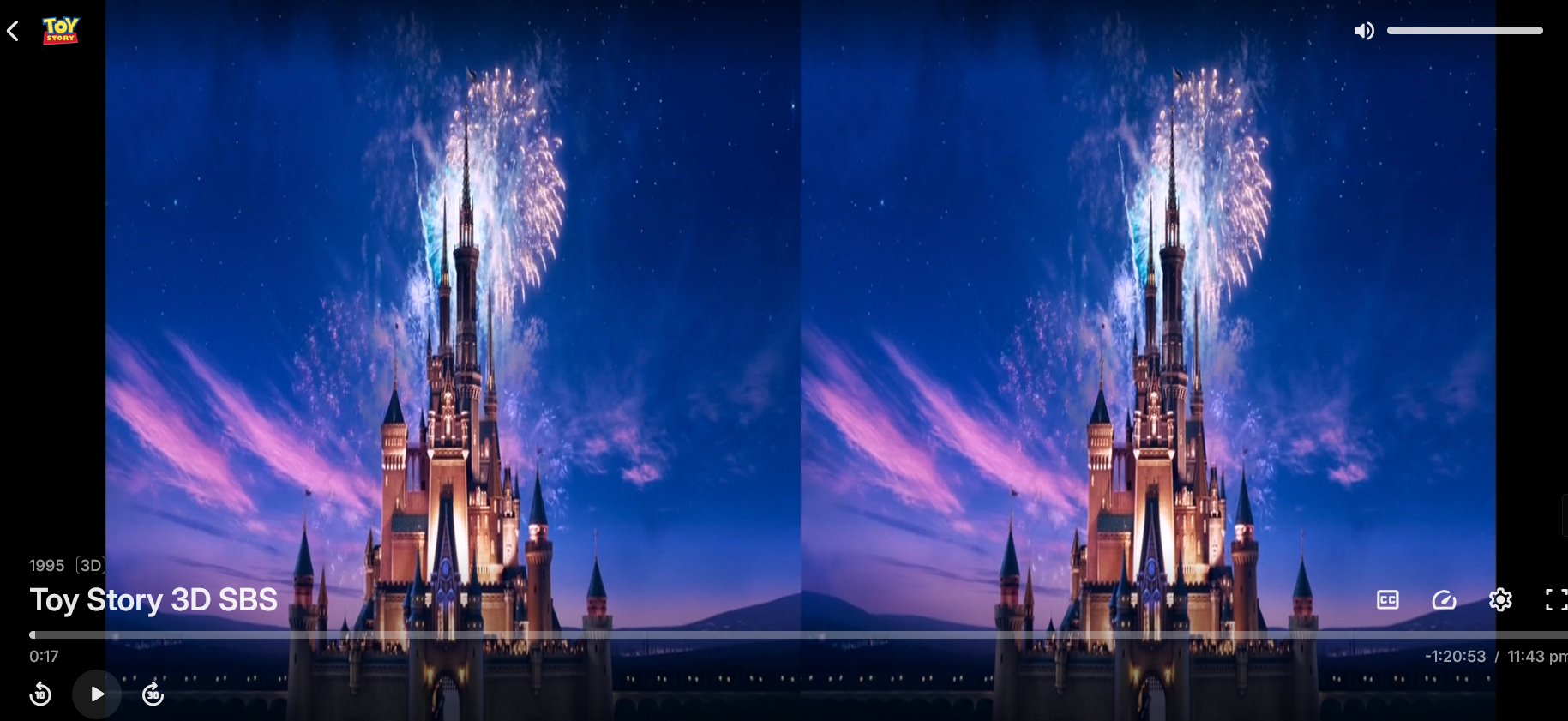 RanmaCanada 495 Posted February 5, 2025 Posted February 5, 2025 Well for starters 3D movies won't play properly if your hardware does not support it. Your server hardware is also ancient, and should seriously be replaced if you are going to attempt any transcoding as you've limited your users to such a low bitrate. 3D movies will only play properly on 3D tvs. If you don't have one, then the system doesn't know how to handle them properly and they will either direct play if your hardware can handle the video codec, or will transcode them if it can not and will leave the video as best as it can in the original format. This is Toy Story in SBS 3D on my browser.