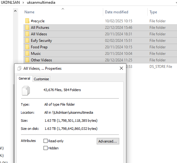 Fademidun 3 Posted February 12, 2025 Author Posted February 12, 2025 (edited) Hi It doesn't really matter the source of deletion, either from Emby server or directly from DSM or from the mapped drive on my desktop, the size doesn't change, however if I add files, to any dir, the size shrinks - Strange (for example if I copy 300GB of date to my video dir, the size reduces by 300GB, if I delete same amount of data/video, the size remain with no increase, even after deleting and empty recycle bin Edited February 12, 2025 by Fademidun