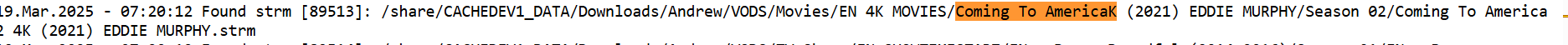 gillmacca01 211 Posted March 19, 2025 Posted March 19, 2025 9 hours ago, mickle026 said: I am going to re-run it here and check but I think I can already see the error, when the name is altered to create the folder, tv shows are having the Sxx Exx removed or whatever format they have, this looks to me like a mis detection and its detecting "2 4K" as season and episode, thus removing that. According to my log entry it is happening after it has already detected it as a Movie As you can see in my log it is correctly identified as a movie, so that has been fixed already, but then it is still being ran through the episode check, it does that to absolutely make sure that its not a TV Show, but two numbers before that date are being mis-detected as season / episode and removed hence the sub folder Season 02 as you can see here. I will adjust the detection again and try to weed this one out without breaking it 18.Mar.2025 - 16:42:17 channelName: EN - Coming To America 2 4K (2021) EDDIE MURPHY 18.Mar.2025 - 16:42:17 logoUrl: https://www.themoviedb.org/t/p/original/cLw2V4cJNXD4v6o8EXCHfI9JNms.jpg 18.Mar.2025 - 16:42:17 Checking [Include Config] Include: True because config is empty. Next check Ignore Config. 18.Mar.2025 - 16:42:17 Checking [Ignore] Contains 18.Mar.2025 - 16:42:17 Checking [Ignore] StartsWith 18.Mar.2025 - 16:42:17 Include / Ignore checking passed succesfully. 18.Mar.2025 - 16:42:17 Ingnore/Include Total execution time: 0 ms 18.Mar.2025 - 16:42:17 Detected and removed country code: Modified string is 'Coming To America 2 4K (2021) EDDIE MURPHY' 18.Mar.2025 - 16:42:17 Sanitized Channelname: Coming To AmericaK (2021) EDDIE MURPHY 18.Mar.2025 - 16:42:17 Detected Movies - URL contains the word '/Movie/' 18.Mar.2025 - 16:42:17 Detected and removed country code: Modified string is 'Coming To America 2 4K (2021) EDDIE MURPHY' 18.Mar.2025 - 16:42:17 Adding movie: Coming To America 2 4K (2021) EDDIE MURPHY imagePath=https://www.themoviedb.org/t/p/original/cLw2V4cJNXD4v6o8EXCHfI9JNms.jpg, year=2021, genres= 18.Mar.2025 - 16:42:17 groupTitle Folder omitted due to IgnoreGroupTitleFolder setting. 18.Mar.2025 - 16:42:17 Constructed Folder Name: D:\VODS\Movies\Coming To AmericaK (2021) EDDIE MURPHY\Season 02 18.Mar.2025 - 16:42:17 Item [2229330] Adding to Folder: D:\VODS\Movies\Coming To AmericaK (2021) EDDIE MURPHY\Season 02 Is it appearing like that in the logs? Yes, but it is also classing it as a tv show