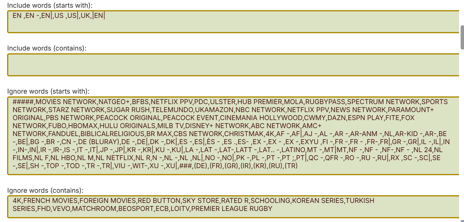 mickle026 650 Posted March 22, 2025 Author Posted March 22, 2025 53 minutes ago, gillmacca01 said: So the question is, why it's not ignoring for me? The only difference I can see at the moment is you haven't removed language codes in the output, but that should not matter as that is done later. That should not be the reason. I can't check right now, just arrived back at work