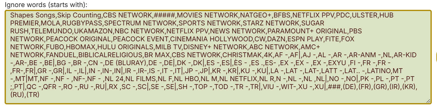 mickle026 650 Posted April 4, 2025 Author Posted April 4, 2025 2 hours ago, gillmacca01 said: Also LiveTV output folder is still showing content that is in my ignore list. example: CBS Network I can see it getting through in the logs 04.Apr.2025 - 15:59:03 Debugging: Sanitize InputString: 'US| CBS NETWORK' 04.Apr.2025 - 15:59:03 Debugging: Sanitize OutputString: 'US CBS NETWORK' 04.Apr.2025 - 15:59:03 Debugging: Sanitize InputString: 'US| CBS 4 DOTHAN AL (WTVY)' 04.Apr.2025 - 15:59:03 Debugging: Sanitize OutputString: 'US CBS 4 DOTHAN AL (WTVY)' 04.Apr.2025 - 15:59:03 Removed Country code: Input: 'US CBS 4 DOTHAN AL (WTVY)', Output: 'CBS 4 DOTHAN AL (WTVY)' 04.Apr.2025 - 15:59:03 Debugging: Called from=ExtractMetadataAsync:metadata.MovieName 04.Apr.2025 - 15:59:03 Removed Country code: Input: 'US CBS NETWORK', Output: 'CBS NETWORK' 04.Apr.2025 - 15:59:03 Debugging: Called from=ExtractMetadataAsync:metadata.GroupTitle 04.Apr.2025 - 15:59:03 tvgId: loc.CBS (WTVY) Dothan, AL 04.Apr.2025 - 15:59:03 tvgName: US| CBS 4 DOTHAN AL (WTVY) 04.Apr.2025 - 15:59:03 groupTitle: CBS NETWORK 04.Apr.2025 - 15:59:03 channelName: CBS 4 DOTHAN AL (WTVY) 04.Apr.2025 - 15:59:03 logoUrl: http://**********/CBS-4-EL-PASO-TX-KDBC.png 04.Apr.2025 - 15:59:03 Debugging: Pre-Include/Ignore metadata.ChannelName= 04.Apr.2025 - 15:59:03 Debugging: Pre-Include/Ignore metadata.MovieName=CBS 4 DOTHAN AL (WTVY) 04.Apr.2025 - 15:59:03 Checking [Include] Contains 04.Apr.2025 - 15:59:03 Checking [Include] StartsWith 04.Apr.2025 - 15:59:03 **FILTER** Keeping [groupTitle] [6120]: US CBS NETWORK :Filtered by: 'US ' 04.Apr.2025 - 15:59:03 Checking [Include] StartsWith, Include: True 04.Apr.2025 - 15:59:03 Debugging: Keep=True. 04.Apr.2025 - 15:59:03 Checking [Ignore] Contains 04.Apr.2025 - 15:59:03 Checking [Ignore] StartsWith 04.Apr.2025 - 15:59:03 Debugging: Ignore=False. 04.Apr.2025 - 15:59:03 Include / Ignore checking passed succesfully. 04.Apr.2025 - 15:59:03 Ingnore/Include Total execution time: 2 ms 04.Apr.2025 - 15:59:03 Debugging: [ProcessContentAsync] sanitizedMovieName=CBS 4 DOTHAN AL (WTVY), unsantised Name=CBS 4 DOTHAN AL (WTVY) 04.Apr.2025 - 15:59:03 Debugging: Inside GetShowTitle, Before Season Removal, Input=CBS 4 DOTHAN AL (WTVY) 04.Apr.2025 - 15:59:03 Debugging: Inside GetShowTitle, IsitAnEdgeCaseTVShow?, Input=CBS 4 DOTHAN AL (WTVY) 04.Apr.2025 - 15:59:03 Debugging: Inside GetShowTitle, after moviePattern regex, Input=CBS 4 DOTHAN AL (WTVY) 04.Apr.2025 - 15:59:03 Debugging: Inside GetShowTitle, after volumePattern regex, Input=CBS 4 DOTHAN AL (WTVY) 04.Apr.2025 - 15:59:03 Debugging: Inside GetShowTitle, after seasonEpisodePattern regex, Input=CBS 4 DOTHAN AL (WTVY) 04.Apr.2025 - 15:59:03 Debugging: Inside GetShowTitle, after parentheses with year ranges regex, Input=CBS 4 DOTHAN AL (WTVY) 04.Apr.2025 - 15:59:03 Debugging: Inside GetShowTitle, after Season Removal, Input=CBS 4 DOTHAN AL (WTVY) 04.Apr.2025 - 15:59:03 Debugging: [ProcessContentAsync] Pre build Path, ShowTitle=CBS 4 DOTHAN AL (WTVY) 04.Apr.2025 - 15:59:03 Debugging: [ProcessContentAsync] Pre build Path, GroupTitle=CBS NETWORK 04.Apr.2025 - 15:59:03 Debugging - Checking for URL strings.. 04.Apr.2025 - 15:59:03 Type: Live TV - Detected a Stream Url: '173123' 04.Apr.2025 - 15:59:03 Debugging: tvgType after AdjustContent=Live TV. 04.Apr.2025 - 15:59:03 Debugging: filename1=CBS 4 DOTHAN AL (WTVY).strm 04.Apr.2025 - 15:59:03 Debugging: GroupTitle1=CBS NETWORK 04.Apr.2025 - 15:59:03 Debugging: AddContentAsync Inputs: outputDirectory=D:\VODS2, tvgType=Live TV, groupTitle=CBS NETWORK, showTitle=CBS 4 DOTHAN AL (WTVY), season=NULL, fileName=CBS 4 DOTHAN AL (WTVY).strm, fileContents=http://**********/CBS-4-EL-PASO-TX-KDBC.png, year=unknown_year, genres= 04.Apr.2025 - 15:59:03 Debugging: [IsitAnEdgeCaseMovie] Detection Result: (False),(CBS 4 DOTHAN AL (WTVY)) 04.Apr.2025 - 15:59:03 sanitized groupTitle [ Path.Combine() folderName]: CBS NETWORK 04.Apr.2025 - 15:59:03 Constructed Folder Name [2]: D:\VODS2\Live TV\CBS NETWORK\CBS 4 DOTHAN AL (WTVY) 04.Apr.2025 - 15:59:03 Constructed Folder Name [2]: groupTitle=CBS NETWORK 04.Apr.2025 - 15:59:03 Constructed Folder Name [2]: showTitle=CBS 4 DOTHAN AL (WTVY) 04.Apr.2025 - 15:59:03 Debugging AddToContentListAsync: folderName=D:\VODS2\Live TV\CBS NETWORK\CBS 4 DOTHAN AL (WTVY), fileName=CBS 4 DOTHAN AL (WTVY).strm, fileContents=http://**********/173123 04.Apr.2025 - 15:59:03 Item [12238] Adding to Folder: D:\VODS2\Live TV\CBS NETWORK\CBS 4 DOTHAN AL (WTVY) I will see if I can fathom out why