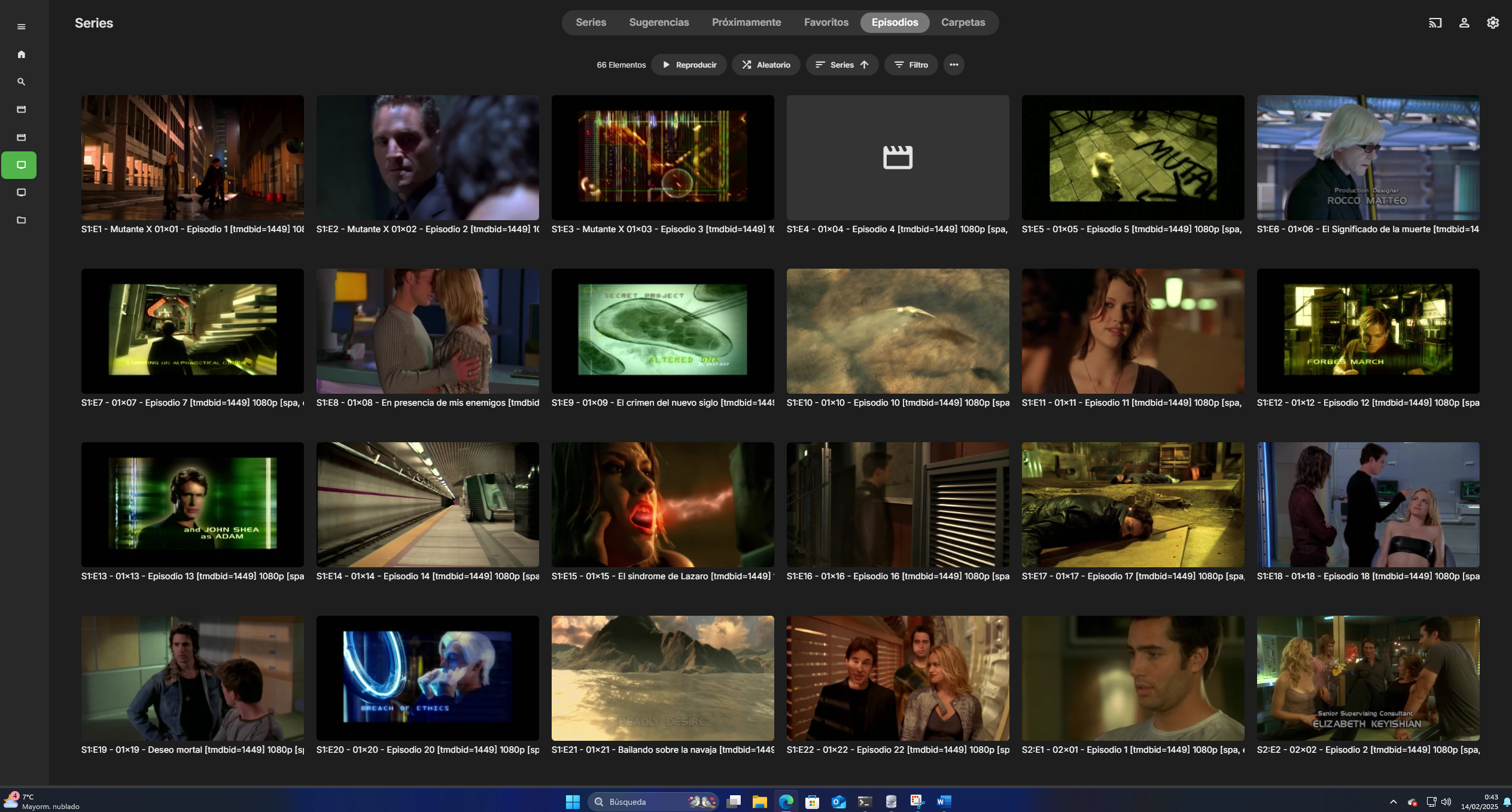 Destrox 0 Posted February 14, 2025 Author Posted February 14, 2025 9 minutes ago, GrimReaper said: How many libraries have you created and with which paths? You can also post screenshot of your Settings>Library tab in the sidebar. I have created 4 libraries, but the only one that is not named well is the one that does not work. Films- U:/Films Films 2- U:/Films2 TV Shows- U:/Tv Shows (The one that doesnt work) TV Shows 2- U:/Tv Shows 2 (This one works well because the files are named correctly). I think the problem could be that they are individual chapters and not a whole folder.