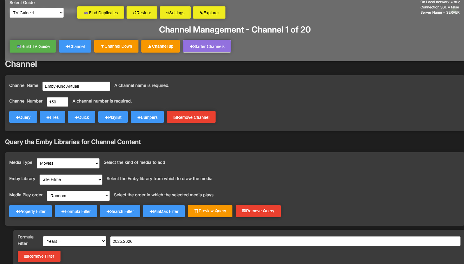 VicMoore 754 Posted August 23, 2025 Author Posted August 23, 2025 (edited) @hdsuisseEmby only supports one EPG in Live TV at a time. You can define more than one Guide in myTV but you can use only one at a time. My plan is to create an EPG for each holiday and day of the week. Emby would then use the appropriate EPG according to the current date. In one EPG I have both Audio channels and Video channels. The EMBY restriction for each channel only limits that channel to contain either audio or video, but not both Vic Edited August 23, 2025 by VicMoore
