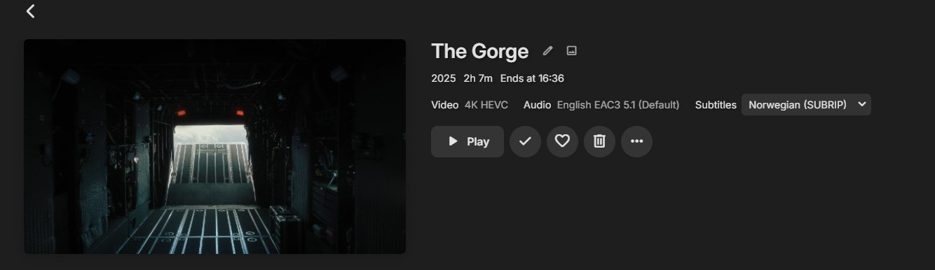 PeteGul 37 Posted February 19, 2025 Author Posted February 19, 2025 Hi The Gorge would not be identified, at all. But if I'll do a manually search, it finds it straight away. I don't see anything in my library at all, just a thumb of the movie, and the file name.