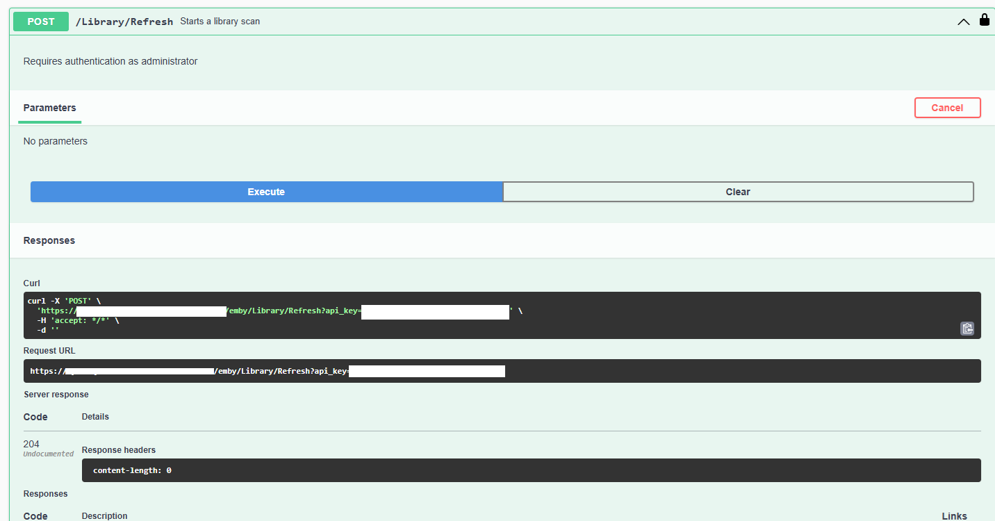 JuJuJurassic 49 Posted February 21, 2025 Author Posted February 21, 2025 I just copied and pasted it into a terminal curl -X 'POST' 'http://11.22.33.44/emby/Library/Refresh?api_key=123456' -H 'accept: */*' -d'' and got curl: option -d: requires parameter  The problem with a copy and paste is it sometimes misses something. is the line above correct? Thanks