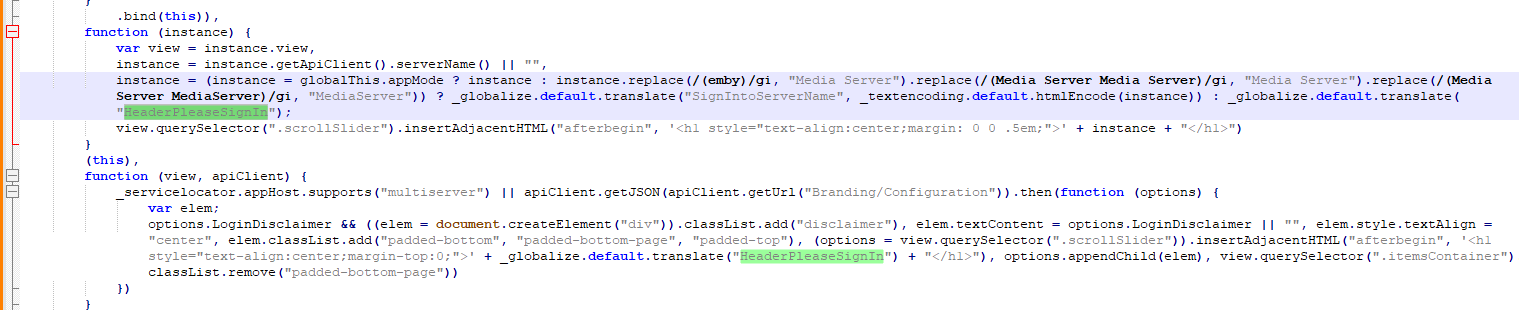 On the login screen for the emby web interface when you're selecting different users there's two lines of text The top line says sign in and the line below it says please sign in.