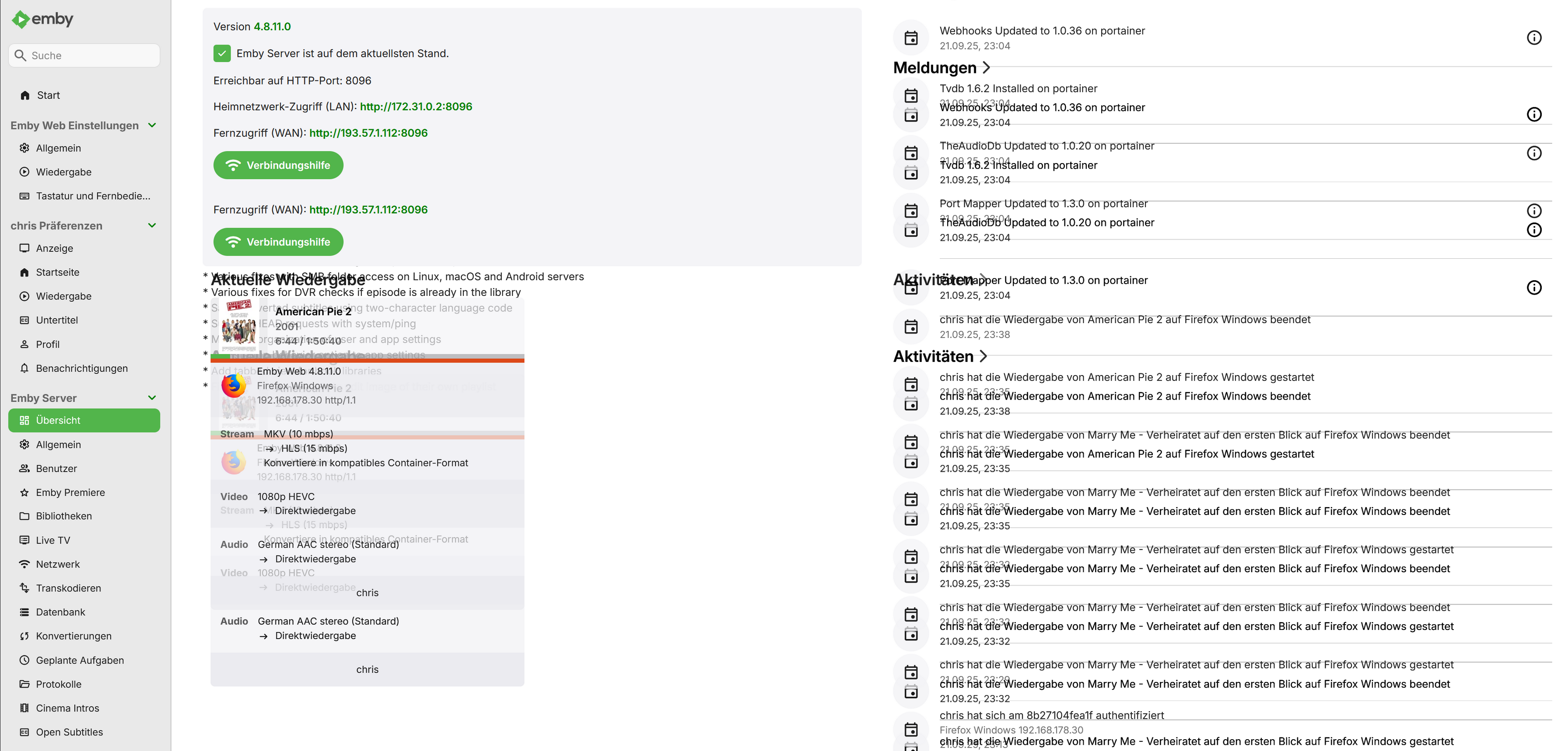 Dark6846 4 Posted March 4, 2025 Posted March 4, 2025 I had this error several times now. Unfortunately, my server is still quite underpowered at the moment, which i guess is certainly contributes to the error. Error description: Sometimes I click on movies or logs and the data takes a long time to load. I can't say exactly how, but by reloading or clicking on the same menu item again, the UI is then loaded twice and displayed one inside the other. This can be seen in the screenshot (I also have a video). Calling up the page via IP and port solves the error again directly. Where does the error occur? WebUI Which browser: Firefox 135.0.1 (64 bit) Emby version: 4.8.10.0 OS: Linux (Ubuntu) Where did I have the error: 'Logs' view and my movie list