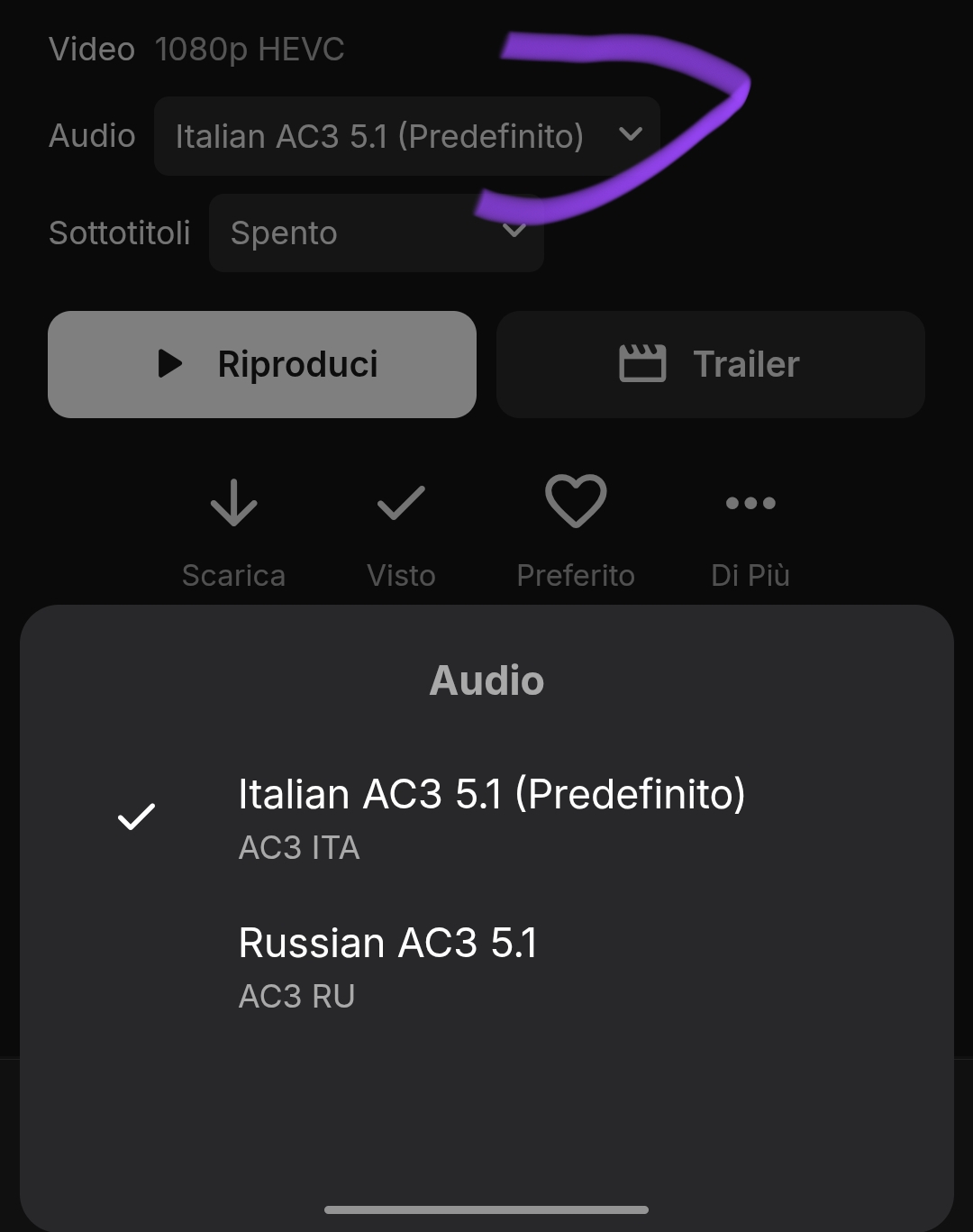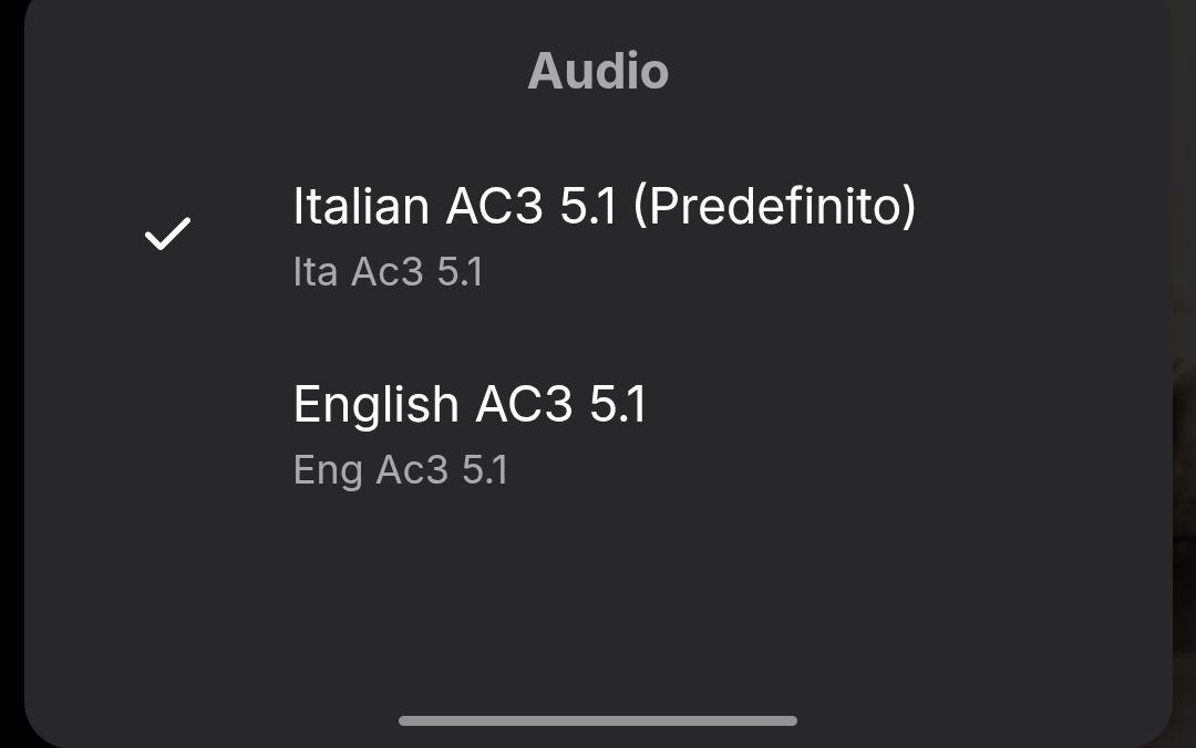 glengrant 8 Posted March 8, 2025 Posted March 8, 2025 Ti compare solo se nel video sono presenti più d'una traccia audio. Se guardi bene la scheda del film, troverai solo una traccia audio in quel film. Per altro non ricordavo che te lo fa selezionare se vuoi direttamente nella scheda del film. Logicamente non funziona come i sottotitoli che volendo li puoi scaricare da servizi esterni, semplicemente perché non mi pare ci siano servizi i download dei soli audio. Devi trovarti un'altra versione di quel film che contenga più tracce audio