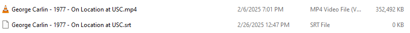 SolidSnake289 3 Posted March 10, 2025 Posted March 10, 2025 (edited) Good day Emby team, I'm currently running Emby 4.8.10.0, with a Lifetime Premiere license. I have a standard OpenSubtitles account, and so am limited to the 100-daily downloads (no problem there). The problem I do have is, Emby consistently tries to download subtitles for files it apparently cannot find matches for, which appears to artificially consume my daily quota. Further, some files are actually named in the logs, while others simply report the "moviehash" in the API call. This brings me to 2 specific questions: How do I identify the exact filenames in my Library associated with an API call such as this example below? I navigated to the (old) OpenSubtitles website (.org), and found "MovieHash" in their "Very-Advanced Search", and none of the MovieHash IDs in my log (I checked 10) are found when I search. So I'm at a loss for identifying these files. 2025-03-09 11:48:11.587 Info HttpClient: GET https://api.opensubtitles.com/api/v1/subtitles?languages=en&moviehash=a57367d2c203332f As noted above, some filenames are specifically called out in the logs, such as seen below. I thought I could get around this by creating an empty SRT file (0-kilobyte) in the same directory with a matching filename (example attached). However, Emby continues searching OpenSubtitiles for these files despite the empty file. Do the SRT files have to contain some minimum text/content in order for Emby to consider the subtitle "real" and avoid the OpenSub search? 2025-03-09 11:48:02.717 Info HttpClient: GET https://api.opensubtitles.com/api/v1/subtitles?imdb_id=249854&languages=en&moviehash=7e8920bfd056ee2f&query=George Carlin - 1977 - On Location at USC.mp4 I recognize I could "stop" the sub search by disabling subtitles on a given library/content folder, but without being able to identify the affected files, it would be a game of wack-a-mole: disable subs on a certain library, wait for a library scan (because of 24-hour quota), see if the log is full of overruns again, etc. Many thanks! Edited March 10, 2025 by SolidSnake289 Added server version