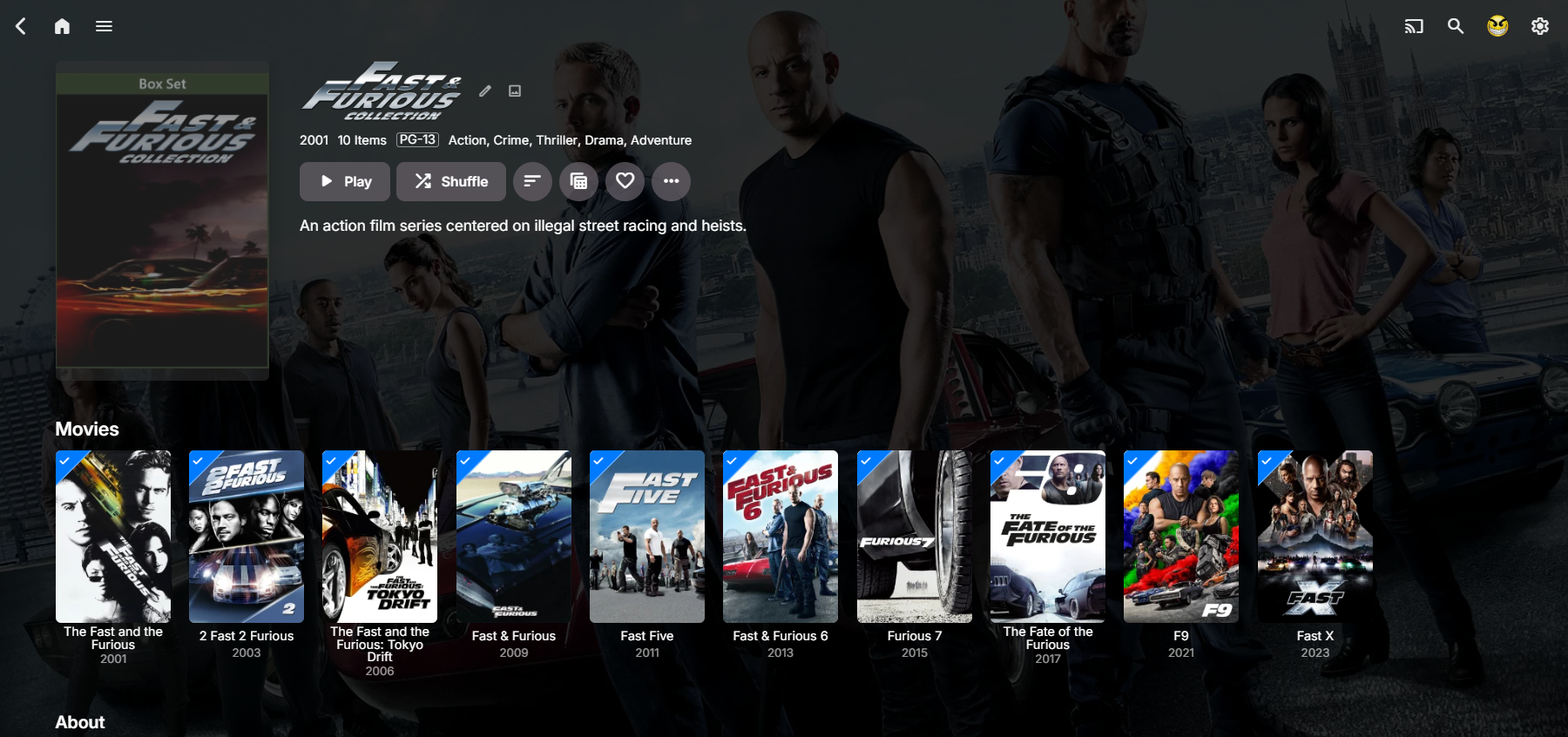 Happy2Play 9780 Posted March 22, 2025 Posted March 22, 2025 12 hours ago, Chiisaii said: Actually, like the movie Mission: Impossible or Fast & Furiouswhich have too much seasons. If it could be combined and displayed as a single cover, with multiple episodes inside after clicking, the viewing experience would be much better. But that is exactly what Group items into collections does. But this will assume you have collections data for all your media or have manually assigned them to collections. But have no idea is Infuse honors this feature either.