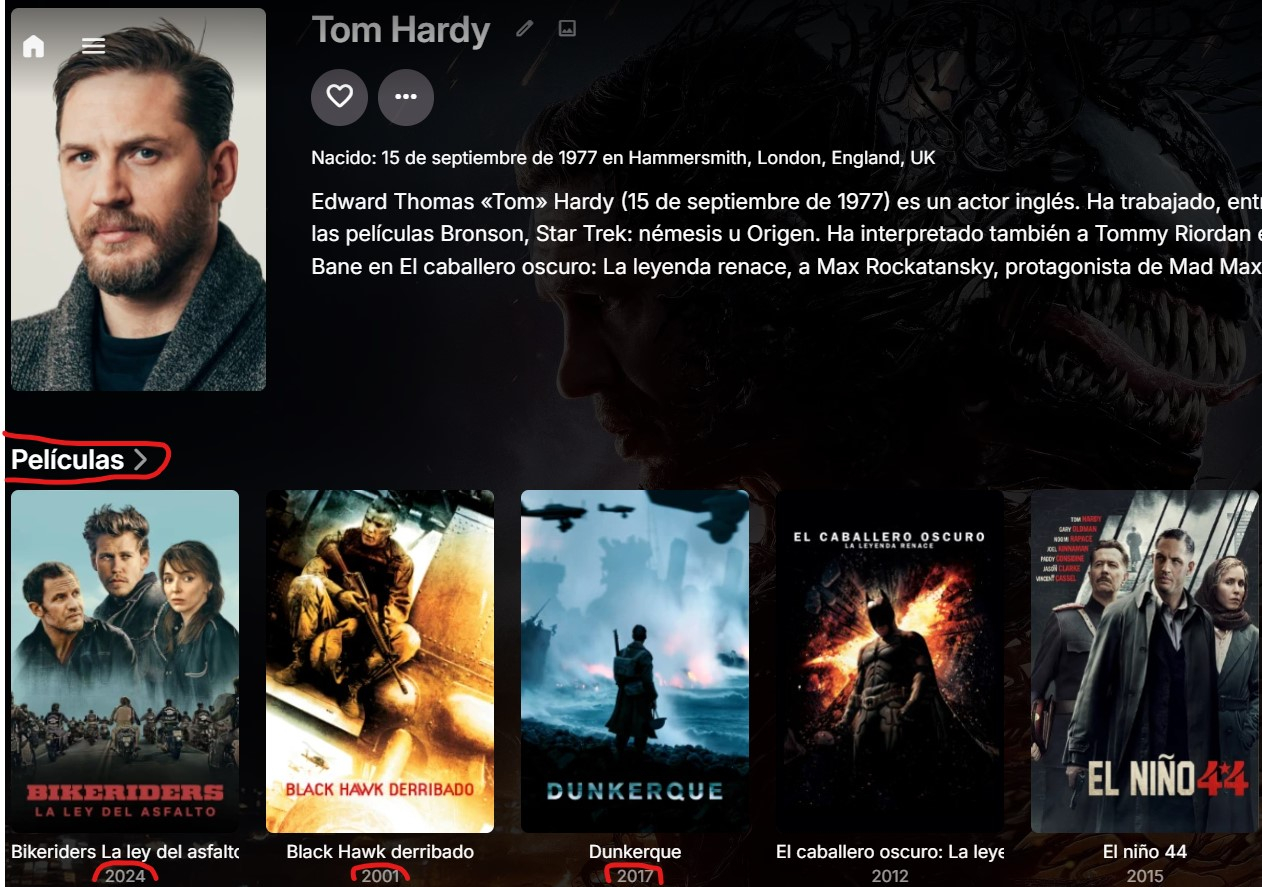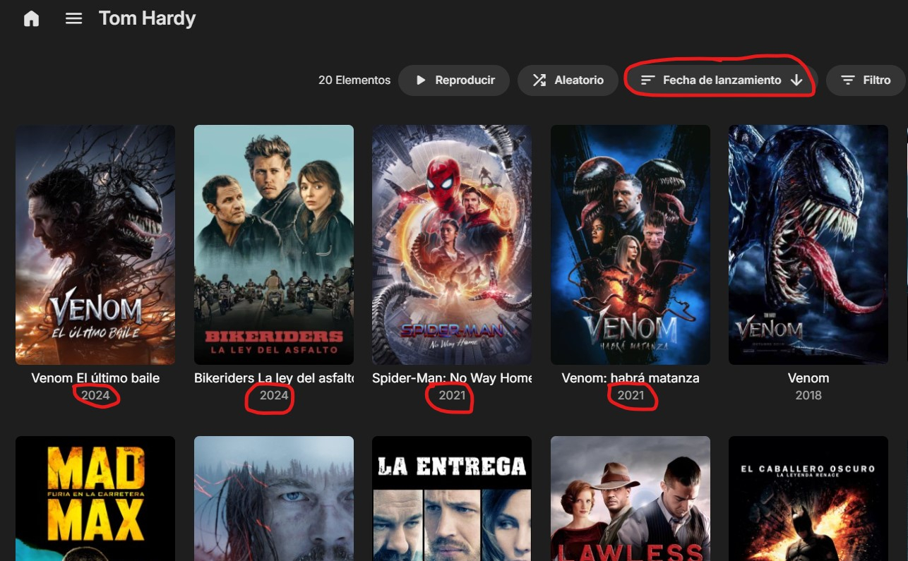 hoplitasesp 0 Posted March 22, 2025 Author Posted March 22, 2025 (edited) Thank you for your quick response. I know that if you search for the actor, the movies appear, but not in order of release date, in windows server after clicking on "movies link" these can be ordered, but neither in android tv nor in lg webos there is the option to click on the "movies" or "series" section of this actor, so cant be sort on. Edited March 22, 2025 by hoplitasesp