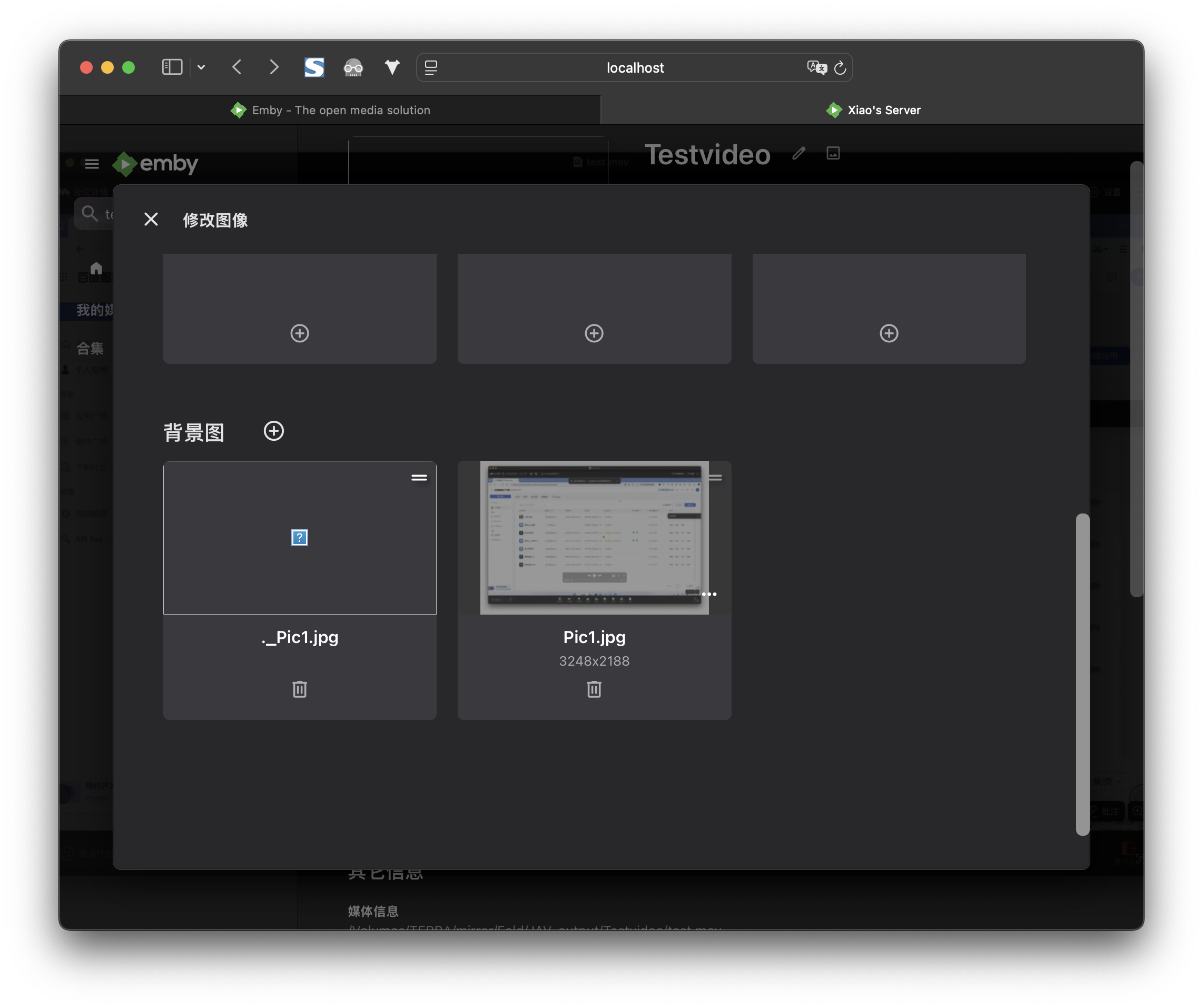 YuiAkari 0 Posted March 28, 2025 Author Posted March 28, 2025 thx for your reply. But the issue still persists. My version is 4.8.11.0 on an Apple Silicon chip, and the operating system version is 15.3.2 (24D81). I have now created a test movie folder with the following structure: $ tree -a . ├── ._behind the scenes ├── ._test.mov ├── backdrops │ ├── ._theme_video.mov │ └── theme_video.mov ├── behind the scenes │ ├── ._Pic1.mp4 │ └── Pic1.mp4 ├── extrafanart │ ├── ._Pic1.jpg │ └── Pic1.jpg ├── test.mov └── trailers ├── ._trailer.mov └── trailer.mov Back in Emby Server, as shown in the image below, in the "behind the scenes" section, the ._ files are incorrectly recognized. Similarly, in the "extrafanart" section, these files are also visible. Additionally, during trailer playback, the incorrect ._ files are played, resulting in playback failure, requiring a manual switch to the correct trailer video.