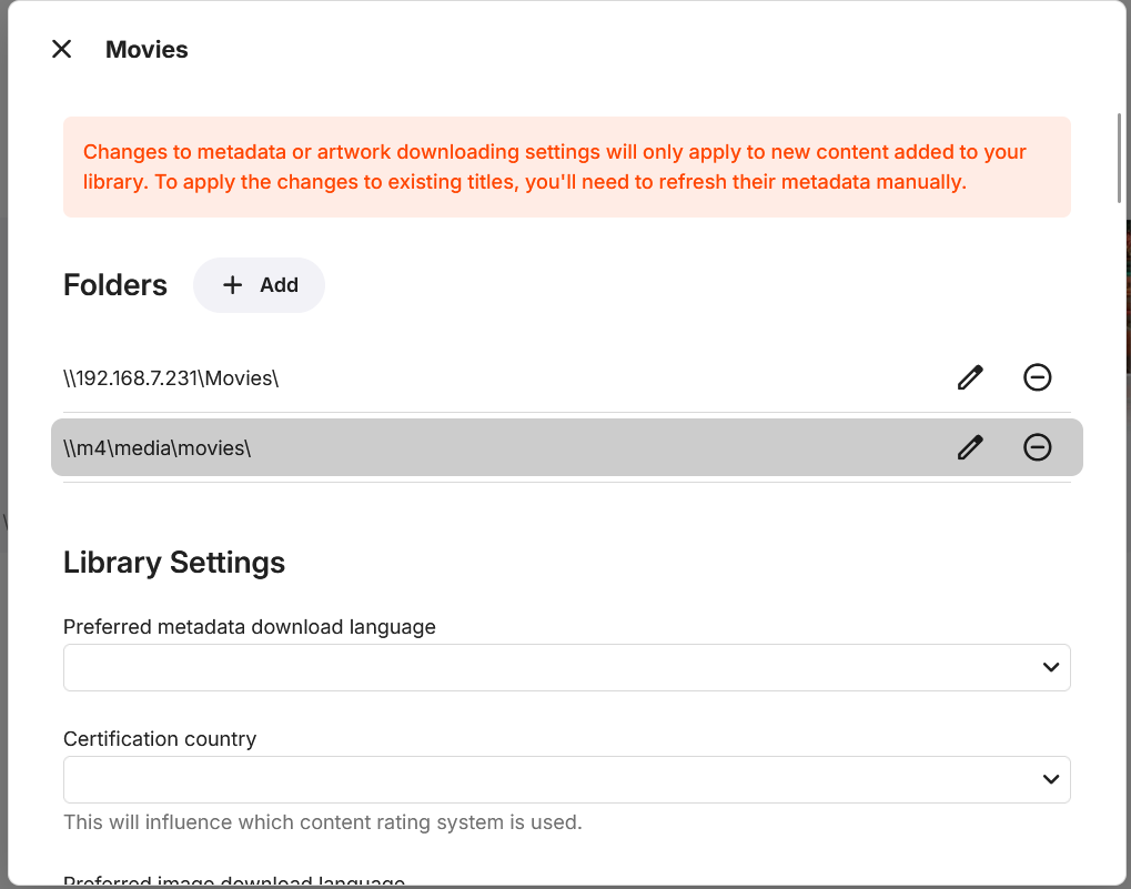 Neminem 1518 Posted March 27, 2025 Posted March 27, 2025 Did you try with this movie path \\m4\media\movies\ By adding the \ to the end. Like you have in your tv show path.