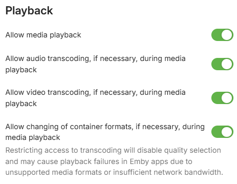 hamzanadim 5 Posted March 31, 2025 Author Posted March 31, 2025 ive been doing some more testing , the only options related to Playback (streaming) is Audio Quality , Video Quality and Remote Video Quality i tried to increase the Audio streaming quality to the max (4mbits) and still didnt work then i tried maxing out the Video streaming Quality to 200mbits and Remote Video Quality to 200mbits and finally Emby can play Dolby Atmos EAC3 5.1 however it still CANT play Dolby TrueHD 7.1 a reminder that my SoundBar supports both. any other suggestions guys ? im really appreciating all of your feedback perhaps one of the Emby developers can help out with this situation thanks again