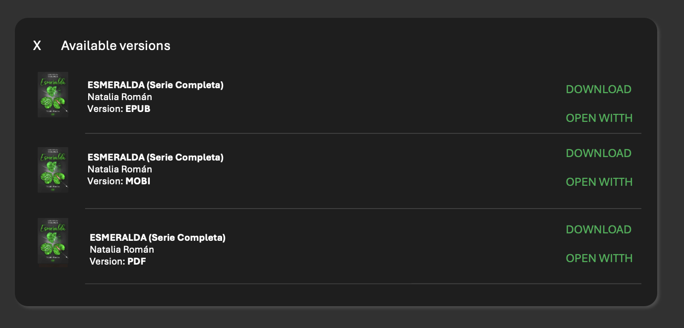 DarkStar1977 119 Posted April 1, 2025 Posted April 1, 2025 (edited) Hi OpenLibrary Team. It's so common (at least for me) to have multiple versions of the same book/comic for different readers (.epub, .pdf, .mobi, etc) As a result, in books view, books appear 3 (or more times): Can we try to handle this by consolidating this in one single book, maybe with an specific icon () and when clicking on the book presenting a view to download the desired version ? Thanks in advance. Edited April 1, 2025 by DarkStar1977