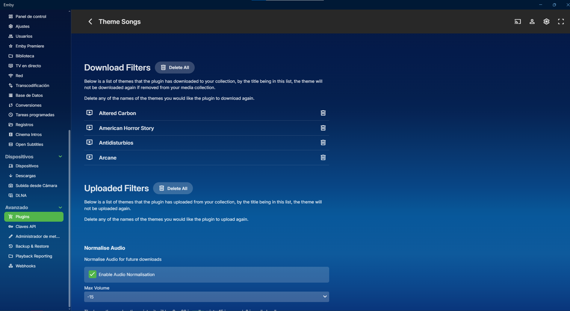 Fumetas 2 Posted April 1, 2025 Posted April 1, 2025 Llevo unos dias utilizando Emby Premiere pero no consigo que me funcionen estos dos plugins. He probado los otros dos plugins que están relacionados que son los de THEME VIDEOS de peliculas y series y esos si que funcionan de manera correcta, pero los de "Musica" no. He probado a reiniciar el servidor, a reinstalar los plugins y nada. Lo maximo que he conseguido es que me descarguen 4 canciones de peliculas y 4 canciones de series, nada más. Espero que me podáis ayudar en como solucionar el problema. Un saludo.