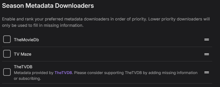 Luke 42077 Posted April 3, 2025 Posted April 3, 2025 1 minute ago, GrimReaper said: Have you tried Refresh Meatada on Season level? That one picks episode NFO changes for me, too. Refresh metadata isn’t the right way because that prioritizes internet metadata first, so the nfo edits will just get overwritten. It might work for you if all internet metadata is disabled.