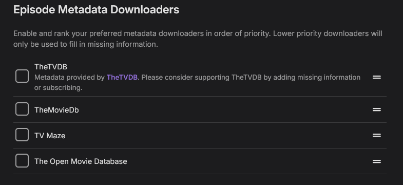 Smitty018210 143 Posted April 3, 2025 Author Posted April 3, 2025 (edited) 10 minutes ago, Luke said: This might be why you think my drag and drop isn’t working. @Luke Yeah I am way past that now. I am trying now to figure out why emby wont read changes I've made to the episode nfo file. Emby should still be reading edits I've made to the nfo file and it's not. Having those turned off shouldn't stop emby from refreshing and showing updated nfo file information that I manually edited right? Edited April 3, 2025 by Smitty018210