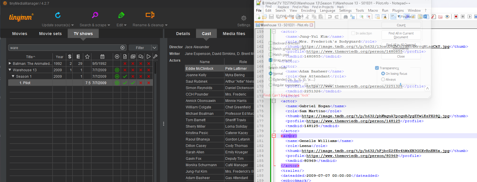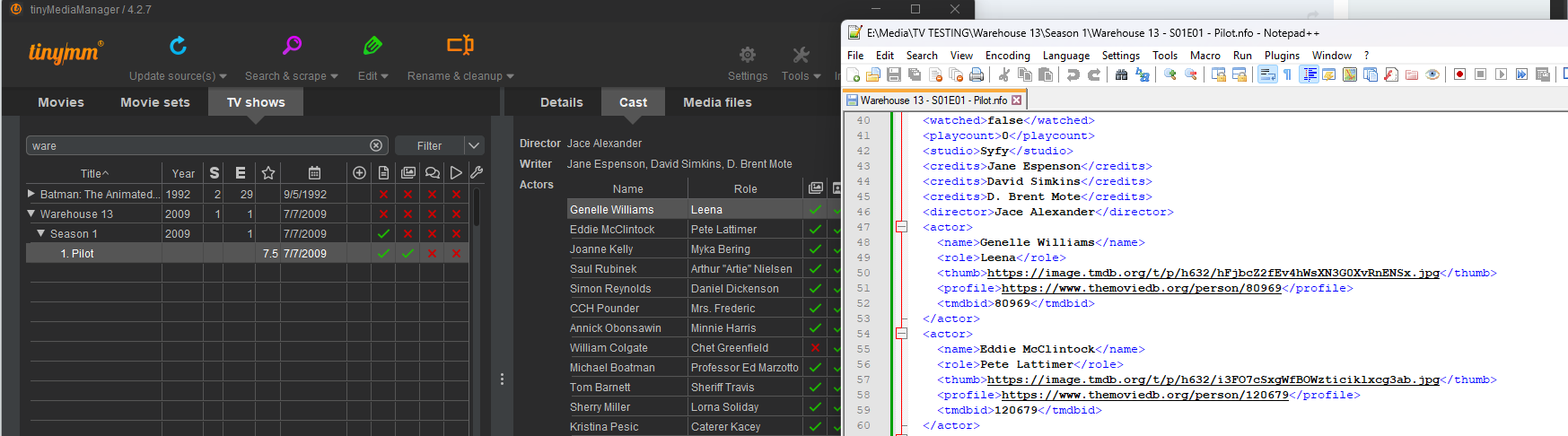 Smitty018210 143 Posted April 3, 2025 Author Posted April 3, 2025 (edited) 5 minutes ago, GrimReaper said: If you scrape actors with TMDB, you'll never see that line/have it written under <type> tag. I deleted the nfo file and re-scanned the episode with the correct TMDB selected and its still coming up. Not sure why. Like I said I'm still pretty new with TMM I didn't even know that you could set series actors and episode actors to different metadata sources. (that's what I did) I had series set to get info from TMDB, but episodes from IMDB I have no idea why. I guess I was just a sleep at the wheel that day. I think I might have to delete everything and re-install TTM (with default settings) and start from scratch again. Not the end of the world. Wouldn't be the first time. Edited April 3, 2025 by Smitty018210
