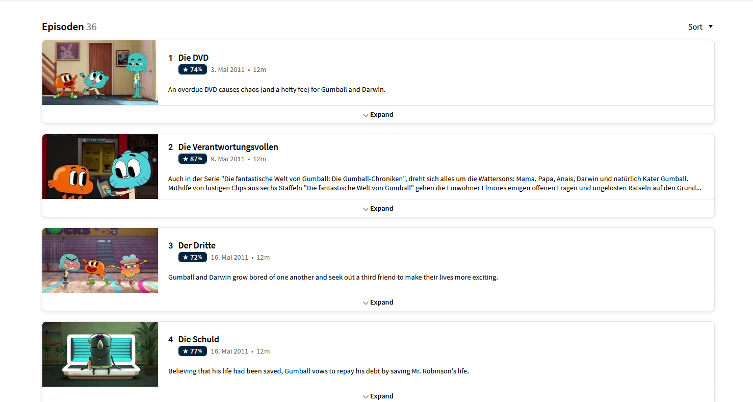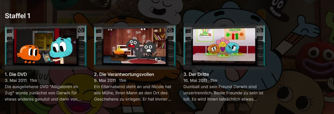 Ryo Saeba 5 Posted April 13, 2025 Posted April 13, 2025 Schaue dir Episode 01a und 01b an und schaue nach ob die Episodentitel mit der Angabe bei Amazon übereinstimmen. https://www.amazon.de/gp/video/detail/B01CIU8BEQ Wenn das der Fall sein sollte (das würde dann auch das a und b erklären) kannst du jedes einzelne Video umbenennen, da dort die Episodenangaben bei Amazon genommen wurden. Es könnte auch sein das man die Episodenangaben der deutschen TV-Ausstrahlung genommen hat. dort ist Episode 1 von Staffel 1 bei uns Episode 36. https://www.fernsehserien.de/die-fantastische-welt-von-gumball/episodenguide
