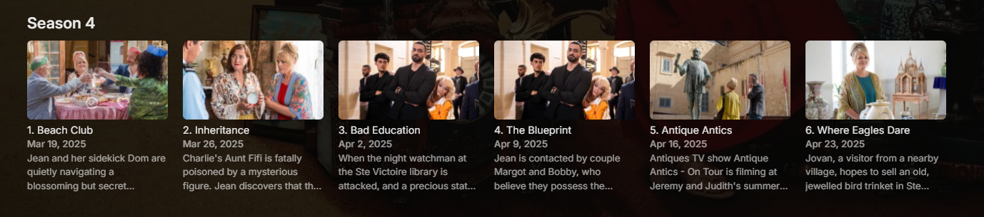 raymondjpg 16 Posted April 22, 2025 Author Posted April 22, 2025 (edited) 28 minutes ago, softworkz said: How did you name the xmas episode file? It should contain S03E00 It was downloaded as S04E01. Subsequently it has been listed for downloading as S03E00 or S04E00, neither of which accords with the convention that specials start with S00. Beach Club was then listed and downloaded as S04E01, then subsequent episodes S04E02, S04E3 etc, which in my view is the correct numbering. However the issue is that Emby is picking up metadata from TheTVDB which in my view has the episodes incorrectly numbered, and isn't placing TV Maze as No.1 priority as listed in the library metadata setings. This is for all shows in the library, not just Madame Blanc. Edited April 22, 2025 by raymondjpg spelling