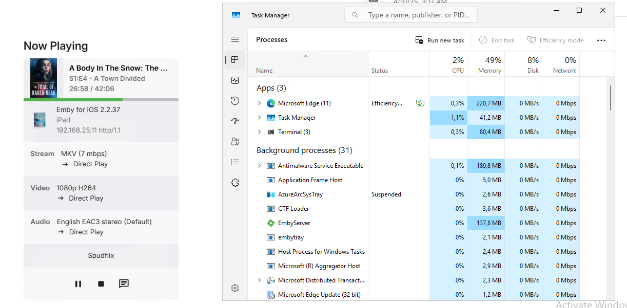 Briany 0 Posted April 16, 2025 Posted April 16, 2025 (edited) I am having a similar issue, I only use Native Emby app for iOS or LGTV. However it will randomly just freeze during playback, sometimes for 4 or 5 min, with absolutely no indication as to why its frozen. There is no congestion on the network, server resources are fine. everything is idling but the Emby playback is completely frozen. It will randomly just start playing again after a few minutes. This happens on my iPad over wifi and on my TV connected to my core switch via cable. I have a 48 core Dell poweredge server with 256GB RAM and all flash SSD storage, my core network is 10GB and I have 1GB to every endpoint. Yet emby still freezes playing a single direct stream. It cant be a bottleneck anywhere on my network or server, so what is happening inside emby? you can see in the below screenshot my ipad stream that has been frozen for about 5min before I started writing this message and is still frozen. embyserver.txt Edited April 16, 2025 by Briany
