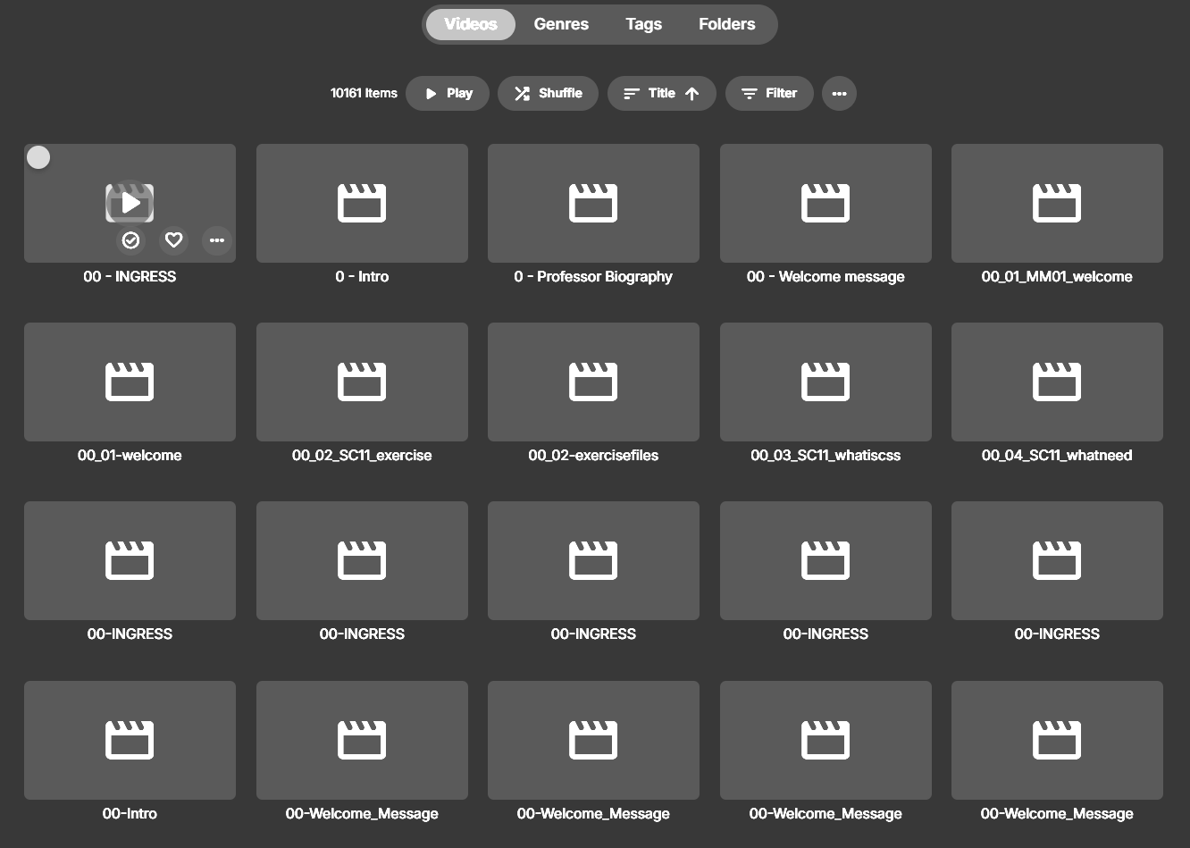 fque69 2 Posted April 19, 2025 Author Posted April 19, 2025 @Lukethanks for the quick reply. I initially tried "TV shows" but I just tried again as home videos and the default view is still wrecked. Here is a snipped of the tree on the filesystem: Edu/ ├── AI │ ├── Complete Data Science & Machine Learning Bootcamp │ │ ├── 1. Introduction to the Course │ │ │ ├── 1. What is Machine Learning.mp4 │ │ │ ├── 1. What is Machine Learning.vtt │ │ │ ├── 2. What is Data Science.mp4 │ │ │ ├── 2. What is Data Science.vtt │ │ │ ├── 3. Download the Syllabus.html │ │ │ ├── 3.1 ML Data Science Syllabus.pdf.pdf but when I view it using the web UI (not using folders) it flattens everything, and there's so much content in flattened-order that its not navigable. Maybe what I am requesting is a feature that allows you to build out the folders in a custom way? It would be pretty simple for me to replicate the folders structure if I had the ability to. @ebr thanks I dont have a folders tab on Tizen. However, I haven't updated the Tizen app since probably october '23 (because it was such a PITA) so maybe thats the issue? My only options at the top are Home and Favorites. it's not a big deal, I appreciate both you responding.