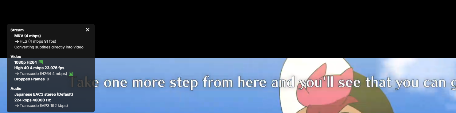 drapacioli 8 Posted April 20, 2025 Author Posted April 20, 2025 (edited) 7 hours ago, pwhodges said: Do you have "Allow subtitle extraction on the fly" enabled in the server transcoding settings? If you do, then ASS subs are delivered as plain text without the fonts, and maybe some formatting stripped off. If you disable this, then subs are burned in by the server with complete formatting, even with the web client. Paul Hi, yes I do have it enabled and that is intentional. I have several aggressively encoded videos which are fine tuned with variable bitrate to consume as little space as possible without sacrificing quality (for example one particular episode is a 10808p file where the video's average variable bitrate is ~2.3mbps), but when you allow transcoding to burn in subtitles, the real-time transcodes destroy the video quality due to the inherent transcoding bitrate maximum being set to the file's average bitrate within Emby's transcoding engine. This causes any fast motion scenes to become blocky messes, because they would under normal circumstances require a higher bitrate (and the source files do contain more data thanks to the variable bitrate the file is encoded in). Thanks to this, transcoding leads to a bad experience visually where it matters most, and while I've asked previously for the ability to adjust this to allow for a higher quality transcode by manually setting the bitrate or a multiple of the bitrate, for various reasons I've been told it's not a practical solution. 17 hours ago, Luke said: HI, yes I just realized that myself. It's an issue in the newest build. It will be resolved in the next build. Probably get one up in the morning. Thanks. Hi, just tried the new beta release, can confirm it works and subtitle extraction on the fly does handle fonts in the web player now. Only issue I'm seeing is it seems to take 10-15 seconds for the subs to start displaying. I'm not sure why they're absent from the first 10-15 seconds of a video? If I wait for them to load in then finally go back, they appear as normal. Edited April 20, 2025 by drapacioli