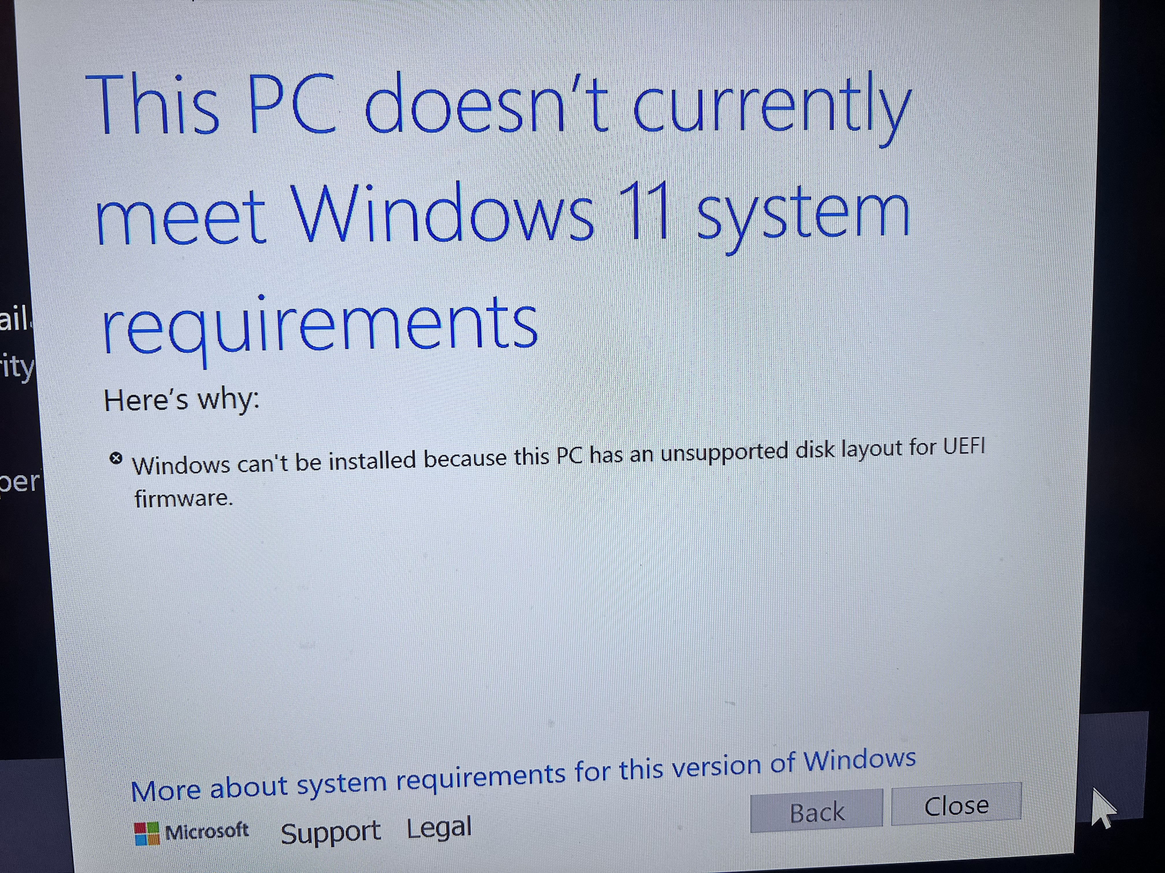 Sammy 790 Posted May 12, 2025 Author Posted May 12, 2025 46 minutes ago, viking19 said: Convert your disk to GPT and Windows 11 should install, or bypass the compatibility check. Oh that sucks. Boot disk is Disk 1. I guess I initialized the disk wrong and now need to do it all over again. I already removed the bad SSD from my system but have another 1TB SSD installed (same Intel indicated above) so I'll have to clone to that one, then format the Samsung SSD and clone back to it again. ARG.. I will eventually do this but it isn't a rush right now as I want to get my Emby Server up and running again.. Otherwise, how to bypass the compatibility check (and does that "stick" over time or will some future Windows 11 update force me to fix the disk to be GPT?