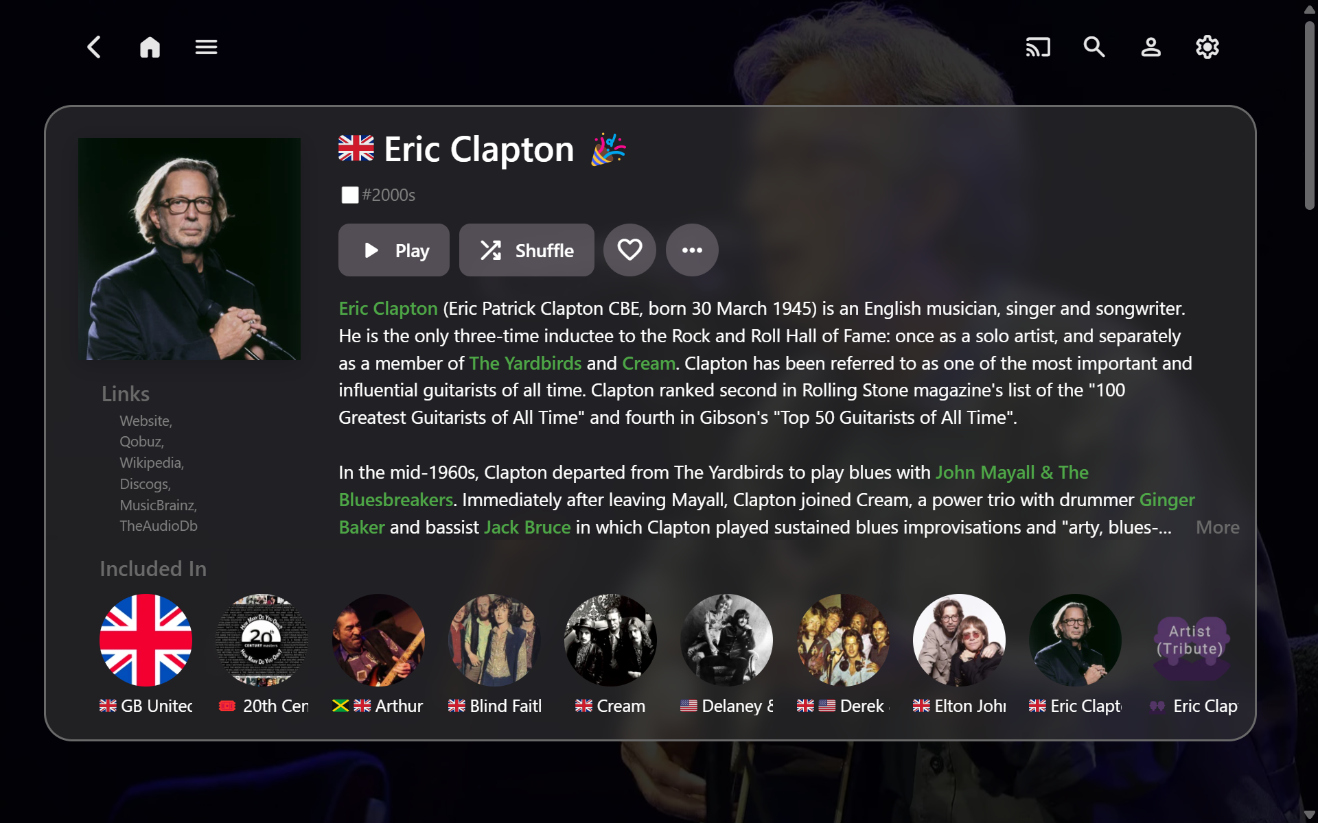 user24 312 Posted May 1, 2025 Posted May 1, 2025 1 hour ago, Eddie6411284 said: When I select "Album Artist," I also see Iron Maiden songs for Bruce Dickinson. Why? The album artist is Bruce Dickinson in one case and Iron Maiden in the other. Hi, this could be because the Songs section combines Artists and Composers. E.g. If you are viewing the Brian Dickinson page, then Iron Maiden Songs composed by Brian Dickinson will also be shown. If you check your Composer embedded tags (with Mp3tag or similar) you will easily be able to confirm this. If you are using the Web App, it is possible to change the style of many elements (e.g. round to square icons) and hide sections that you don't want to see (e.g. More Like This). I think most of what you are asking for is detailed in posts in the Web App CSS section of the forum. It can take a while to set up how you would like it though. Perhaps check it out if you haven't already, Cheers!