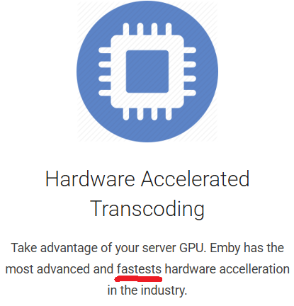 Angus Black 5 Posted May 2, 2025 Posted May 2, 2025 (edited) There doesn't seem to be any direct way to report web site errors so I'll post here. There is a typo on the Premier page of the Emby web site. https://emby.media/premiere.html Under Hardware Accelerated Transcoding fastests should be fastest. Also, there is only one L in acceleration. I request that it be fixed. Edited May 2, 2025 by Angus Black Add more info 1
