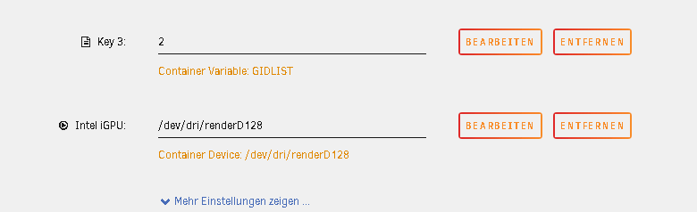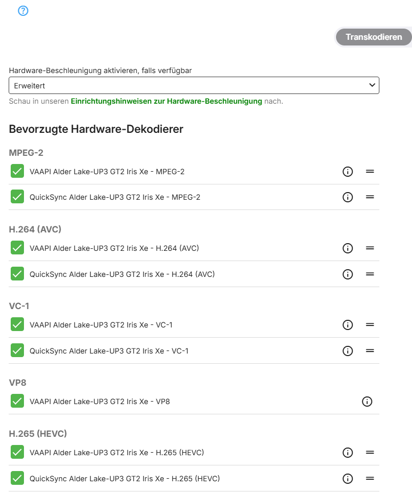 paddl82 5 Posted May 6, 2025 Posted May 6, 2025 Hallo, ich hoste Emby als Docker unter UNRAID. Im Container habe ich die Grafikkarte durchgereicht (siehe Snapshot). In Emby selber erkenne ich auch unter Transcoding/Erweitert, dass er anscheint zugriff bekommt (anbei Snapshot). Meine Premiere-Lizenz ist ebenso gültig. Der Host-CPU ist ein: 12th Gen Intel® Core™ i5-1235U Sieht für mich alles in Ordnung aus? Gruß embyserver.txt