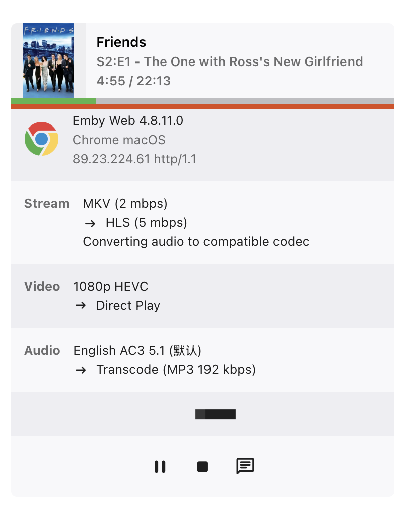 Xuanlang1 1 Posted May 7, 2025 Author Posted May 7, 2025 So I just changed my local HTTP port to 9268, and somehow it just worked. I got the inspiration from this post: However, it was super lagging. I'm having a 1000/1000Mb network, and from the Dashboard, it seems to be finished transcoding. I'm not sure if it's because of the net speed or transcoding, as far as I understand, the red bar shows the transcode progress, am I missing something?