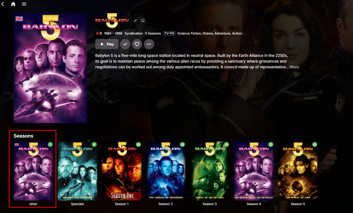 yocker 1247 Posted May 18, 2025 Author Posted May 18, 2025 1 hour ago, Neminem said: If you have 5 episodes with audio eng + fra, subs eng + fra. And then another 5 episodes with audio fra, subs eng. What would be showen on the TV show poster, when having to choose between that. Precisely, i could never get some logic to work with if only all episodes had it.